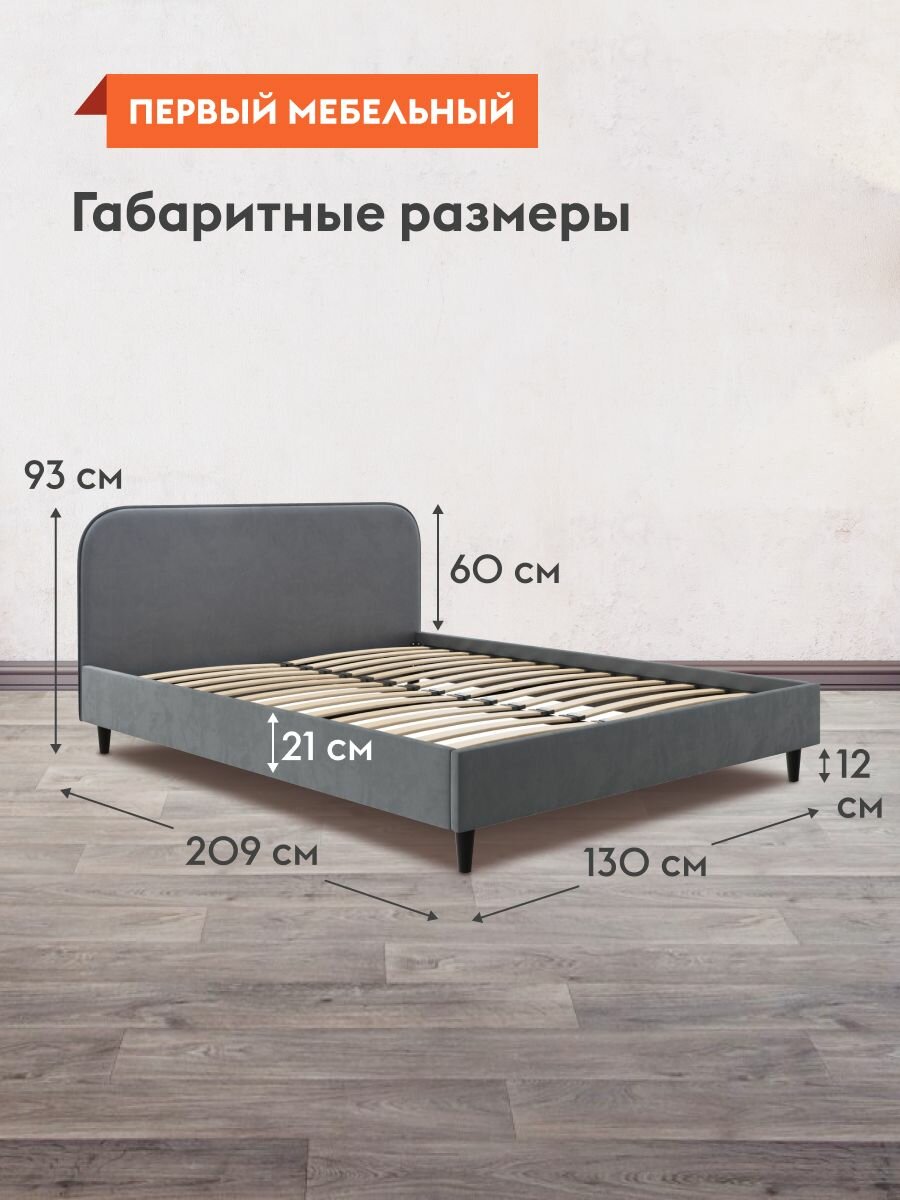 СохранитьОдноспальная кровать Эни 120х200 см, деревянная, с анатомическим основанием, Серый, велюр интересное: