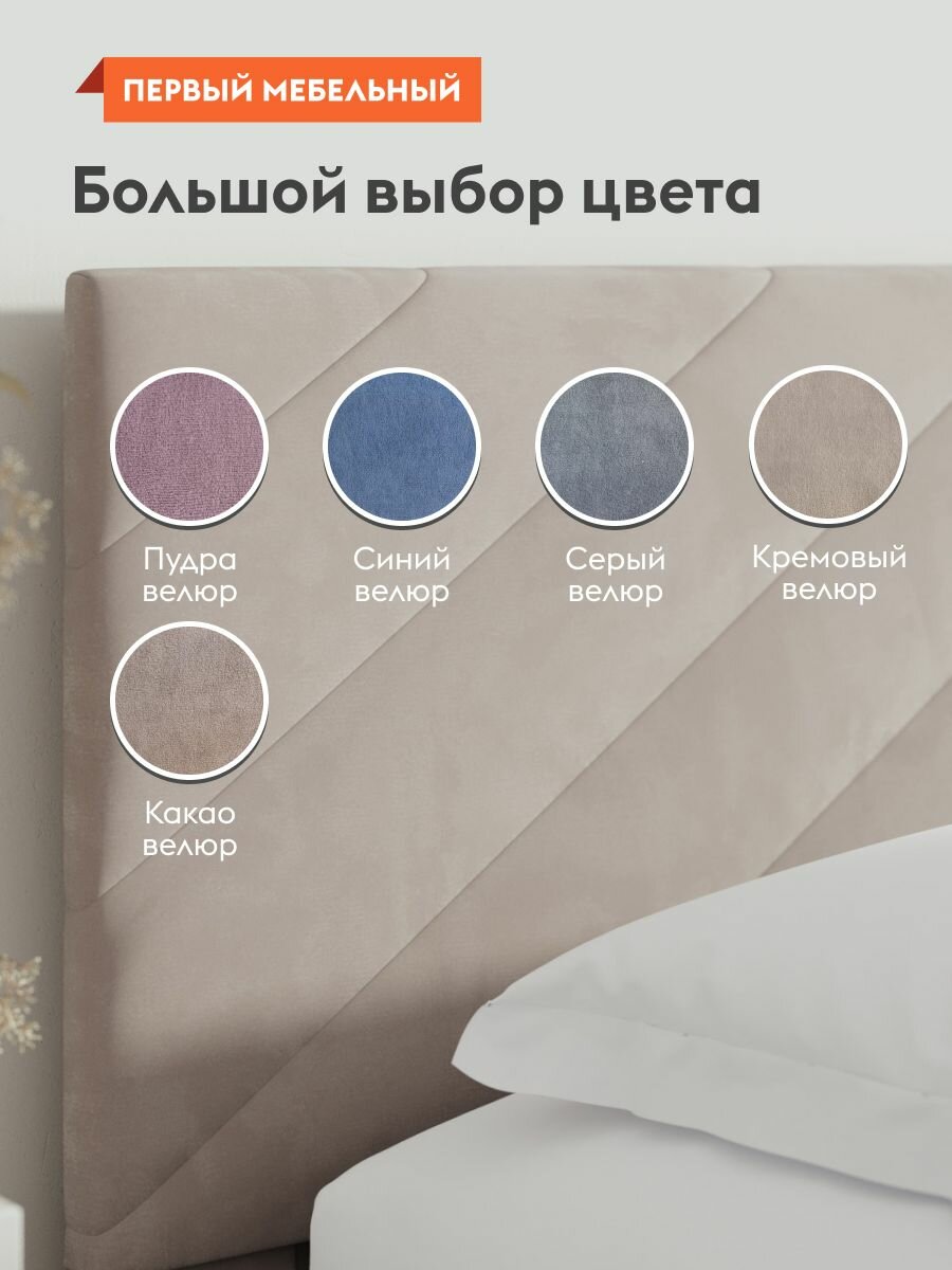 Кровать двуспальная Джос 160х200 см, деревянная, с анатомическим основанием, с мягким изголовьем, Какао, велюр