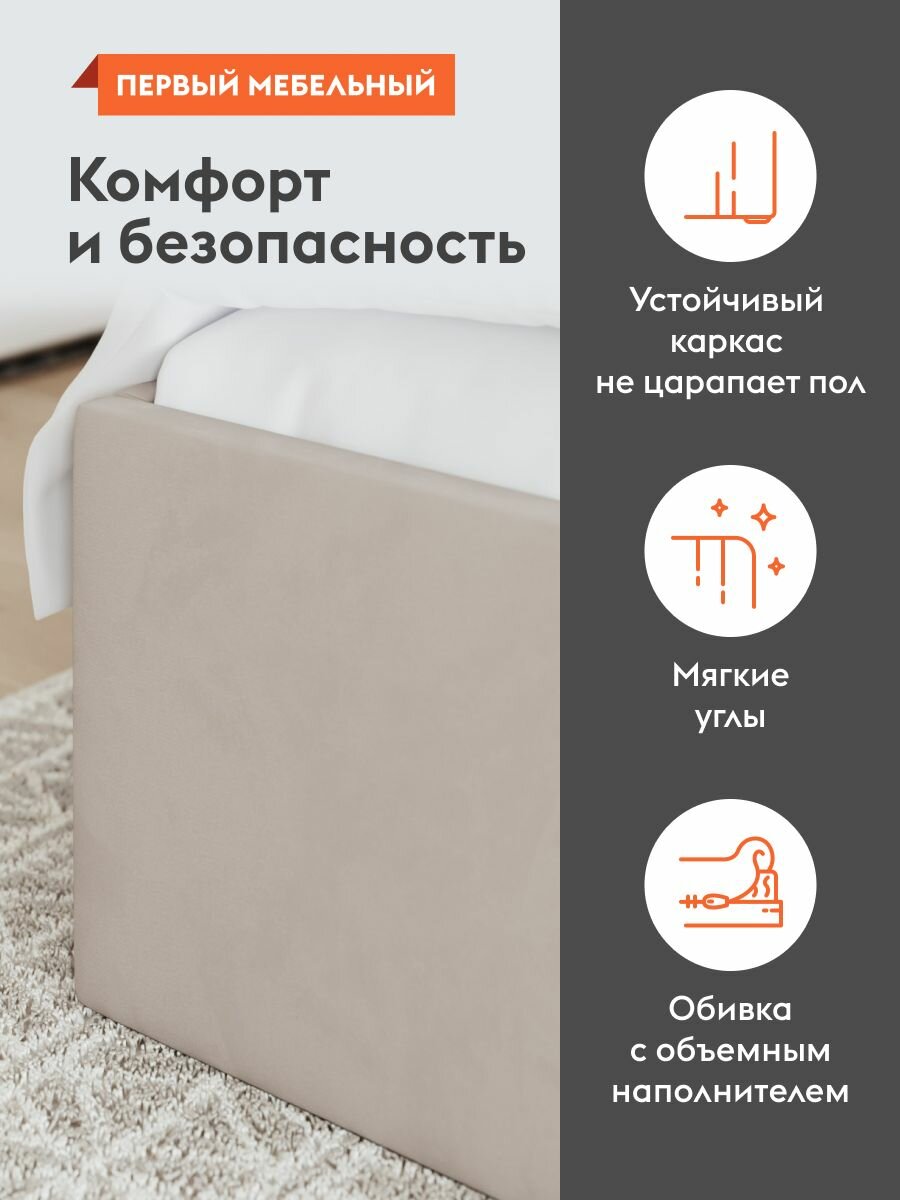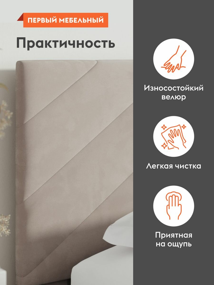 СохранитьКровать двуспальная Джос 140х200 см, деревянная, с анатомическим основанием, с мягким изголовьем, Кремовый, велюр интересное: