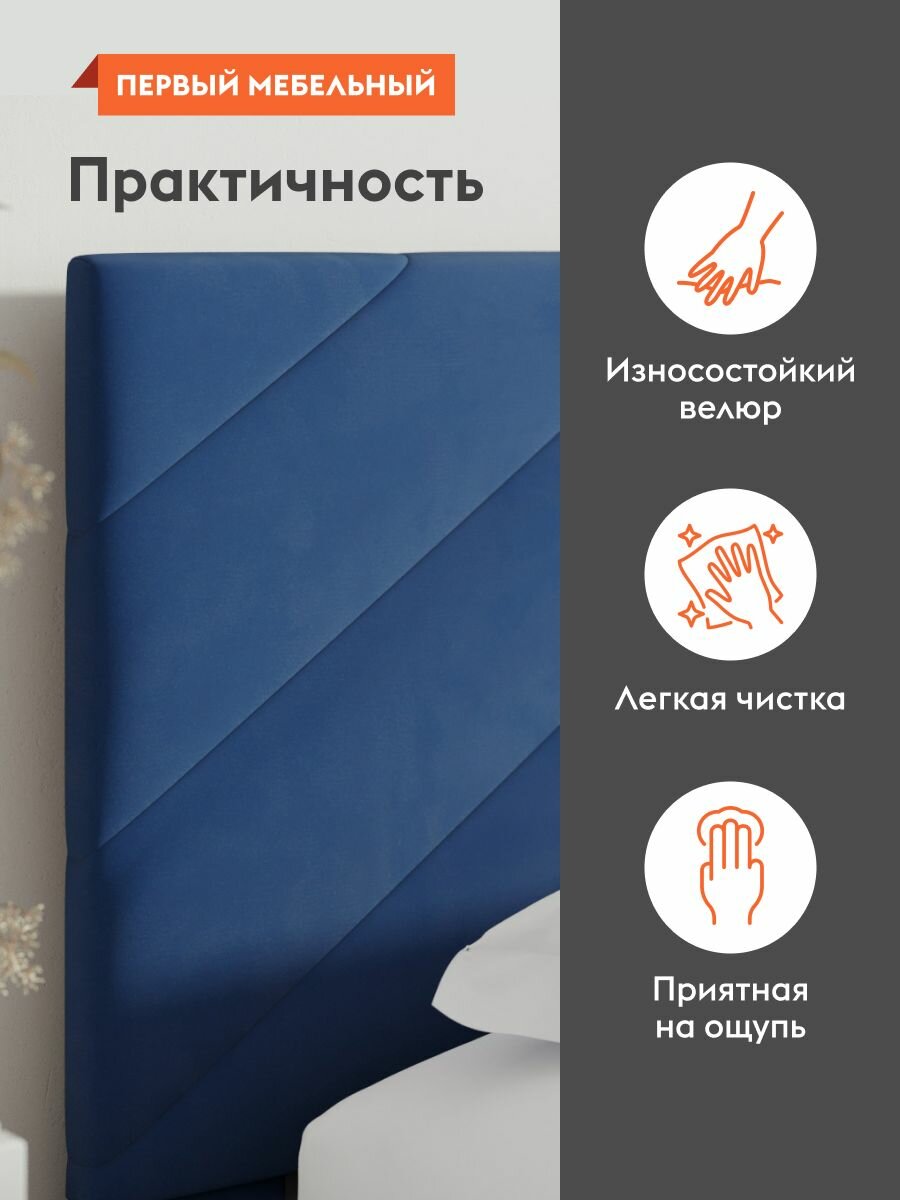 СохранитьКровать двуспальная Джос 140х200 см, деревянная, с анатомическим основанием, с мягким изголовьем, Синий, велюр интересное: