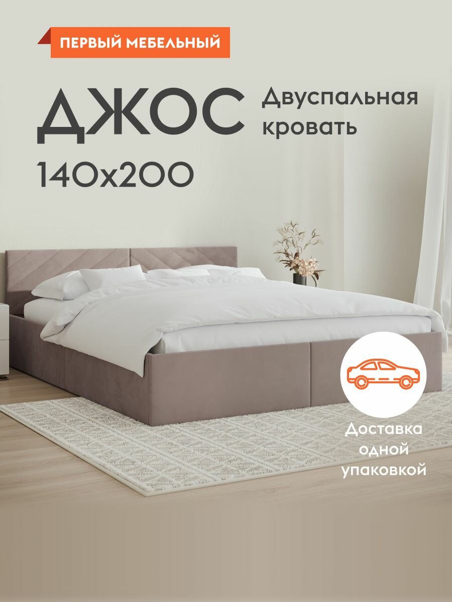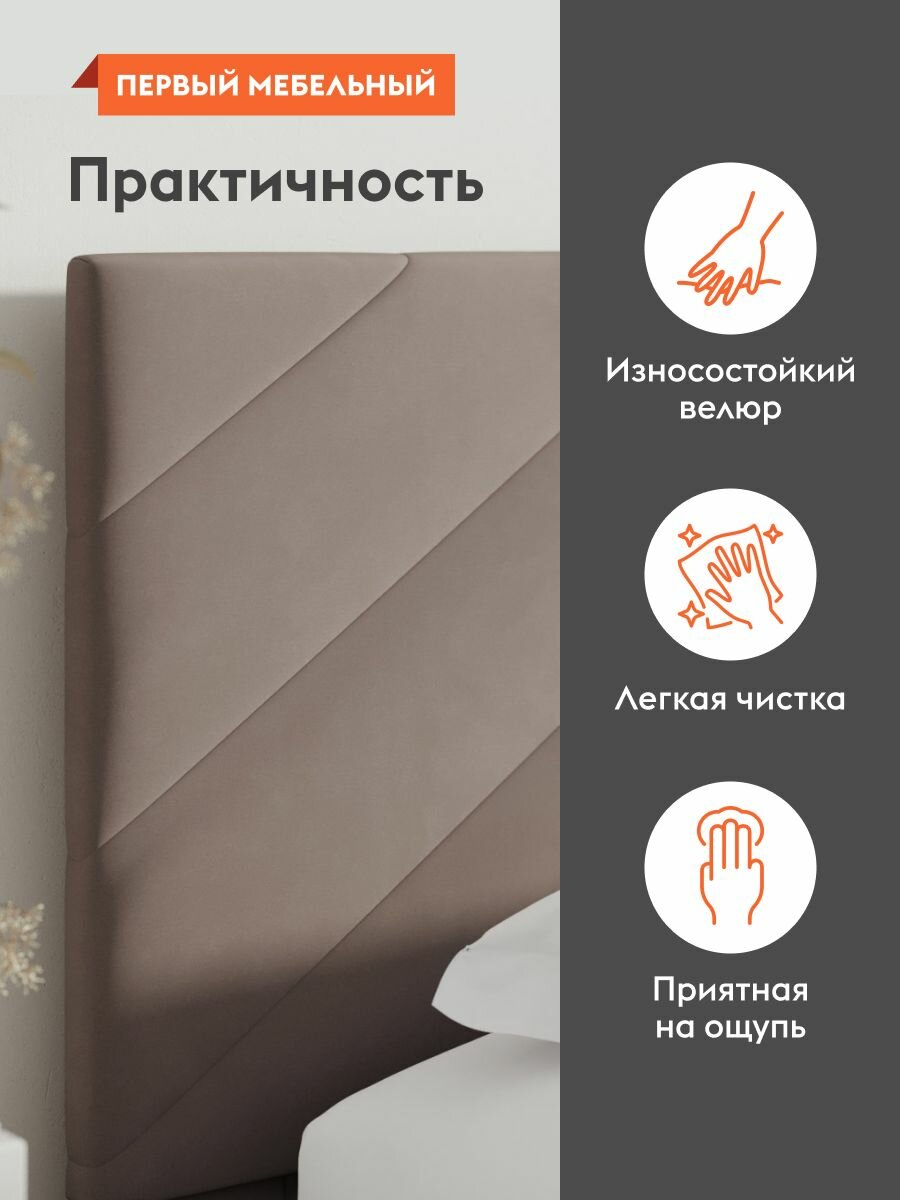 СохранитьКровать двуспальная Джос 140х200 см, деревянная, с анатомическим основанием, с мягким изголовьем, Какао, велюр интересное: