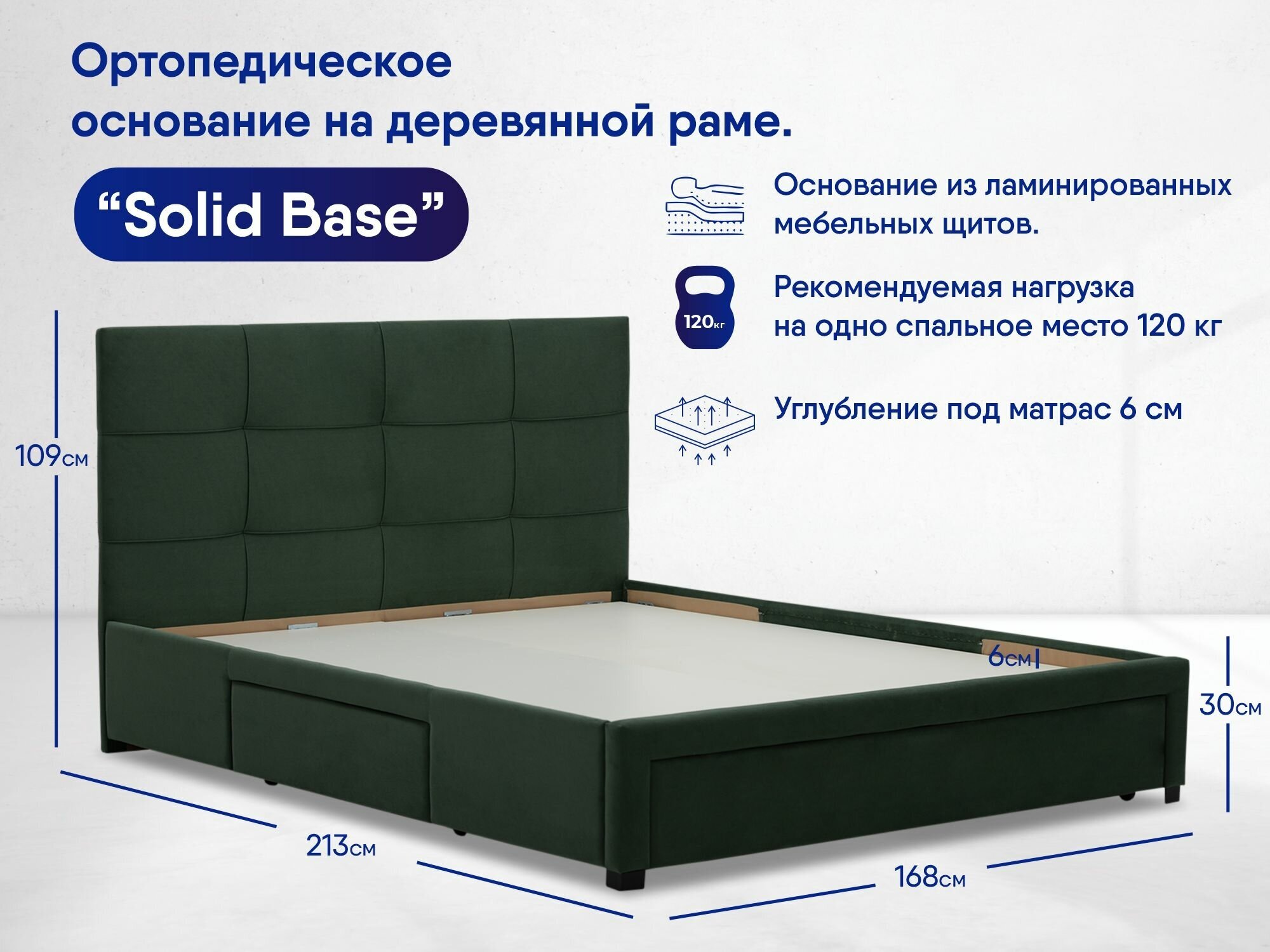 Купить Двуспальная кровать Борба 160х200, с выдвижными ящиками, Ладья, с мягким изголовьем, Amigo Green
