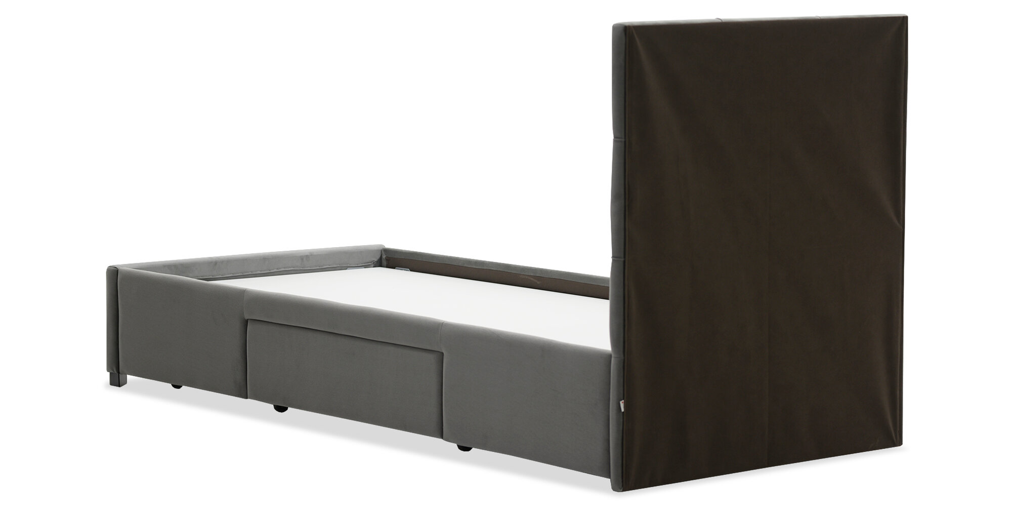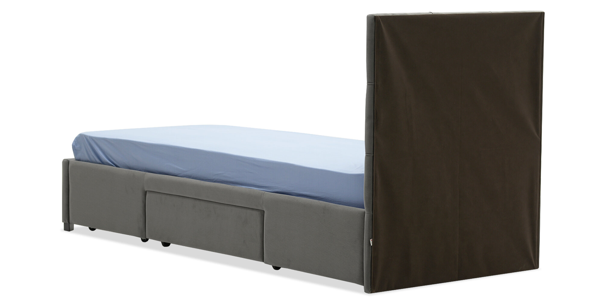 Купить Односпальная кровать Борба 90х200, с выдвижными ящиками, Ладья, с мягким изголовьем, Amigo Grey