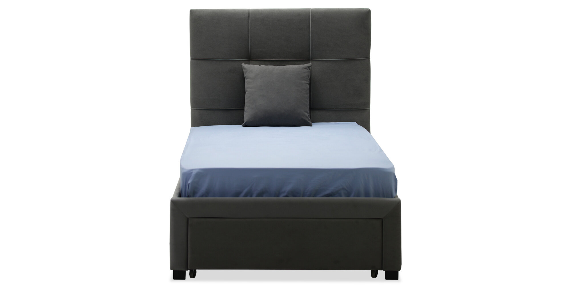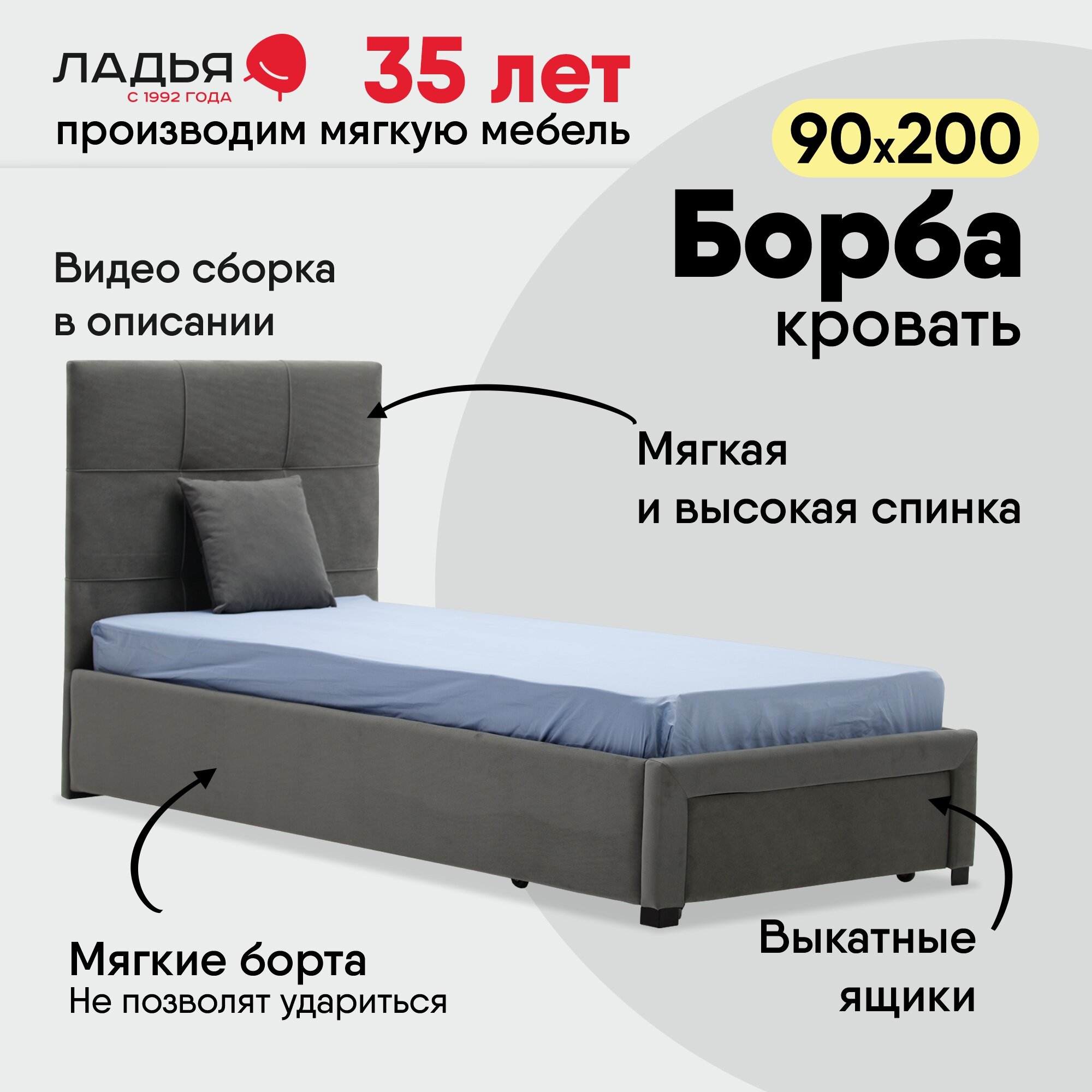 СохранитьОдноспальная кровать Борба 90х200, с выдвижными ящиками, Ладья, с мягким изголовьем, Amigo Grey интересное: