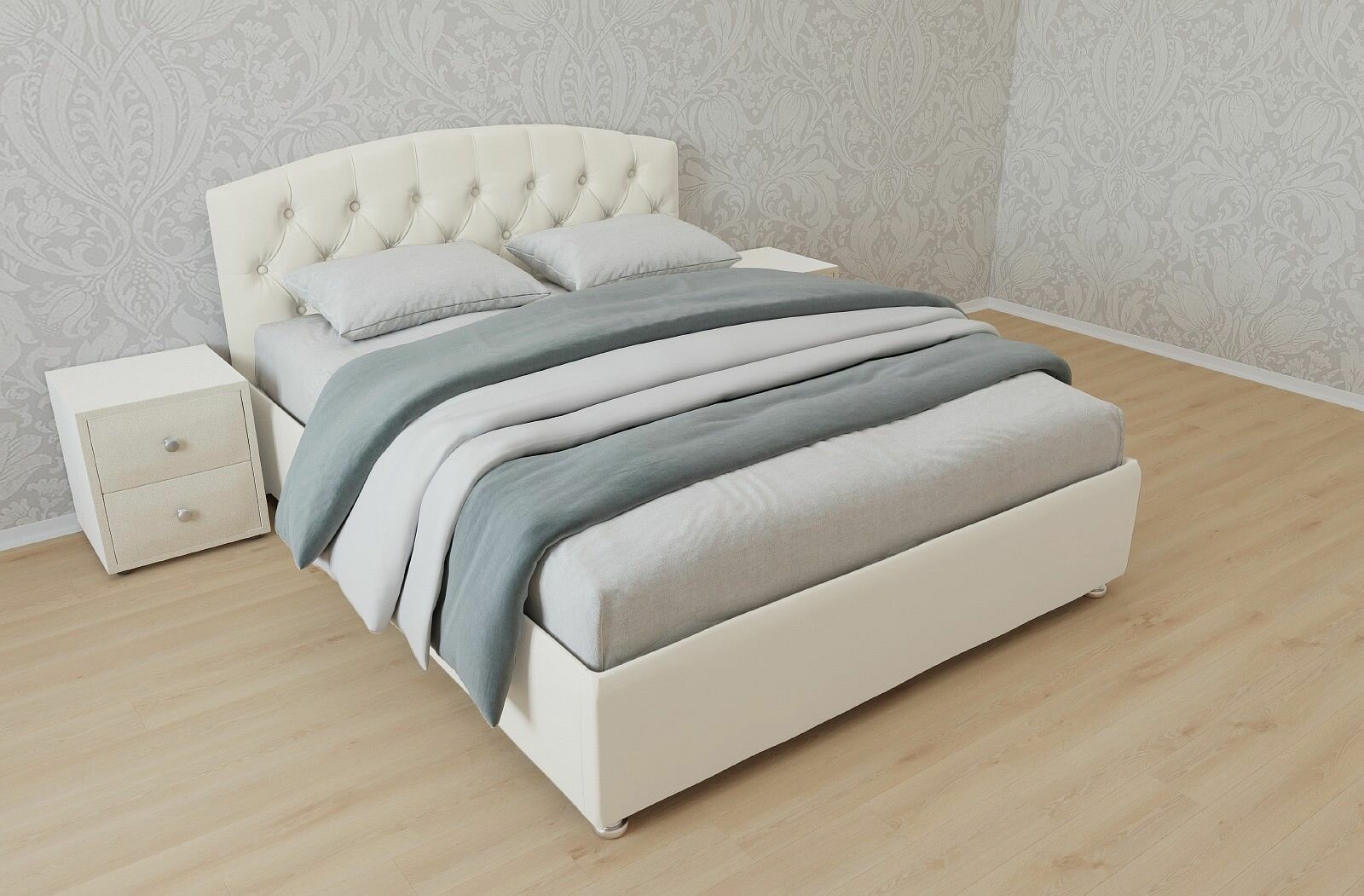 Двуспальная кровать Берлин 160x200 с подъемным механизмом и с коробом для белья велюр белый ножки 5 см