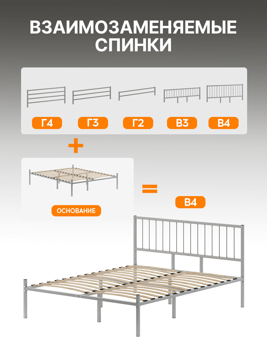 СохранитьКровать металлическая Металика В4 160х200 серая с держателями для матраса и доп. опорами интересное: