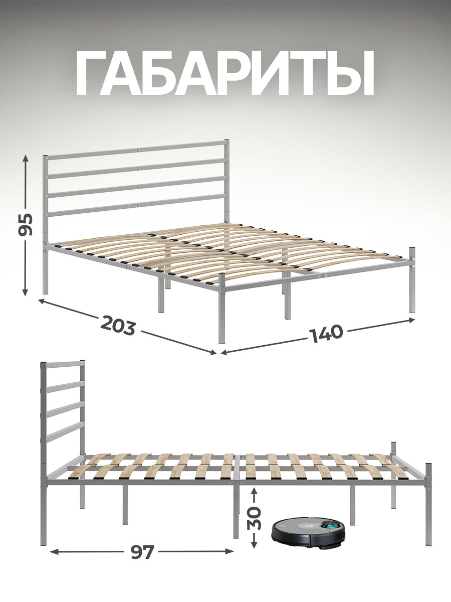 СохранитьКровать металлическая Металика Г4 140х200 серая с держателями для матраса и доп. опорами интересное: