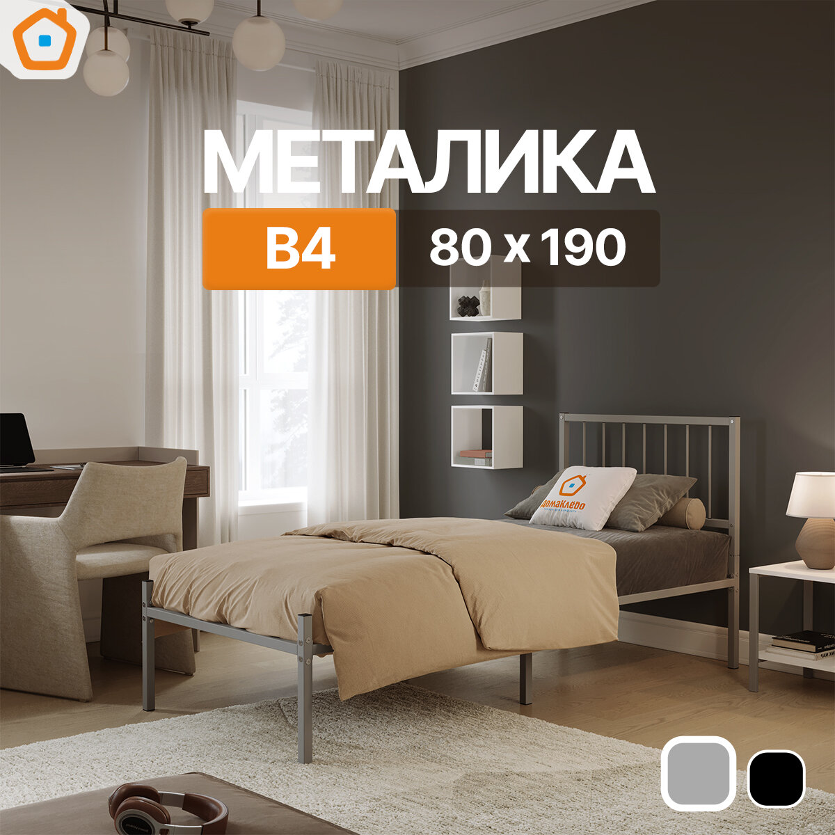 Кровать металлическая Металика В4 80х200 серая с держателями для матраса и доп. опорами