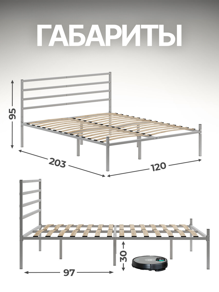 СохранитьКровать металлическая Металика Г4 120х200 серая с держателями для матраса и доп. опорами интересное: