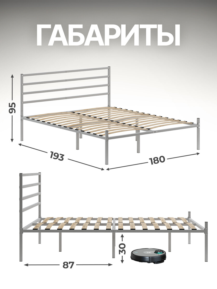 СохранитьКровать металлическая Металика Г4 180х190 серая с держателями для матраса и доп. опорами интересное: