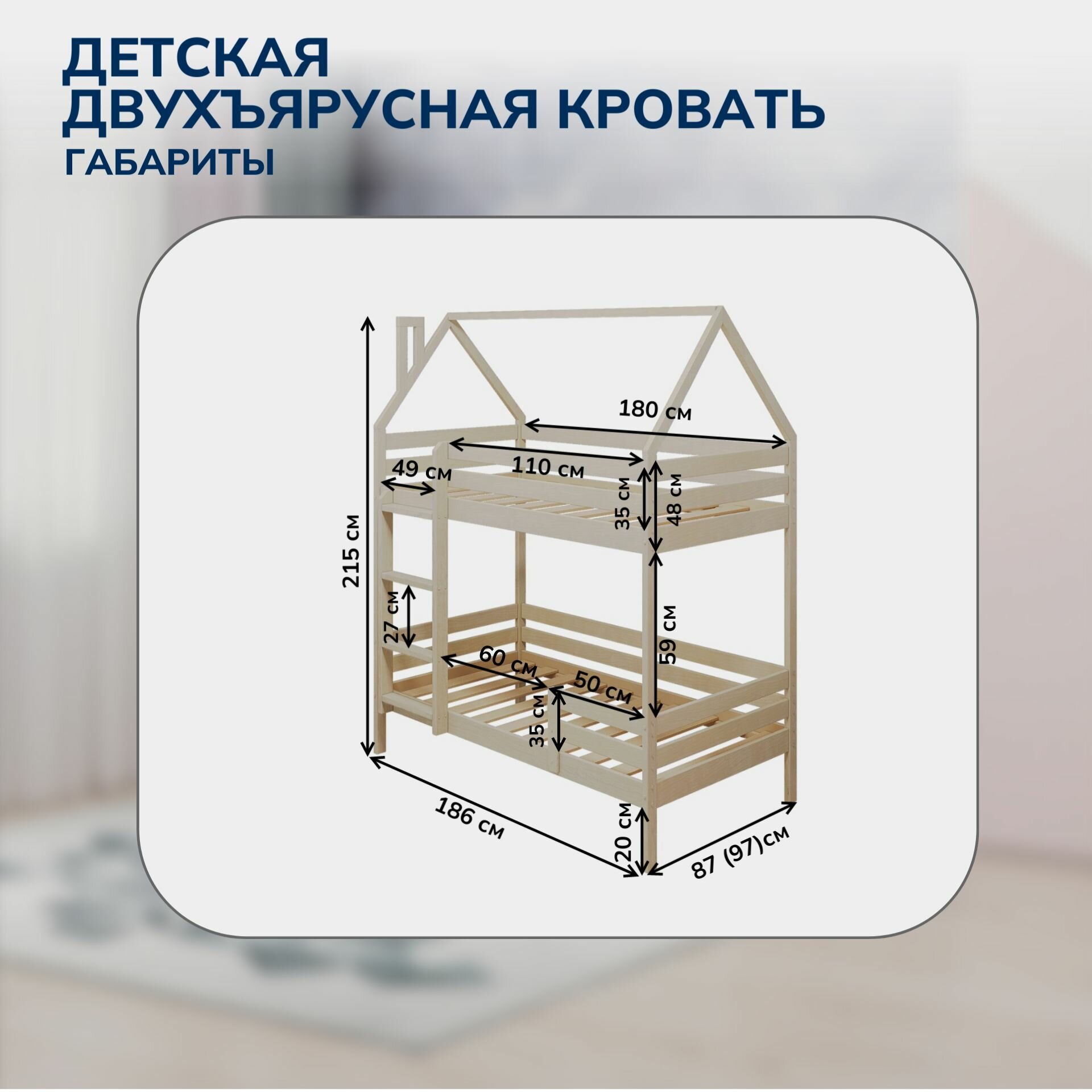 СохранитьДвухъярусная кровать домик из массива березы, без покрытия, 180*90, безопасная детская кровать интересное: