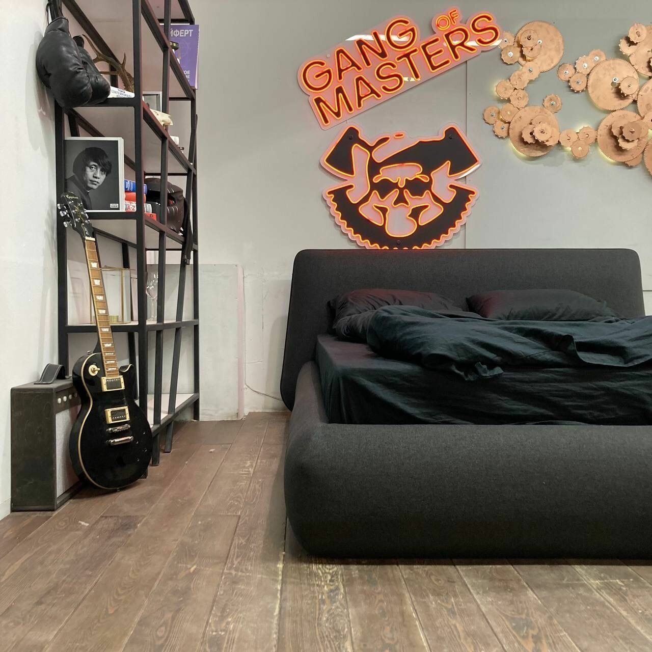Кровать двуспальная «Скайлайн» Банда мастеров, графитовая рогожка, 200x200см