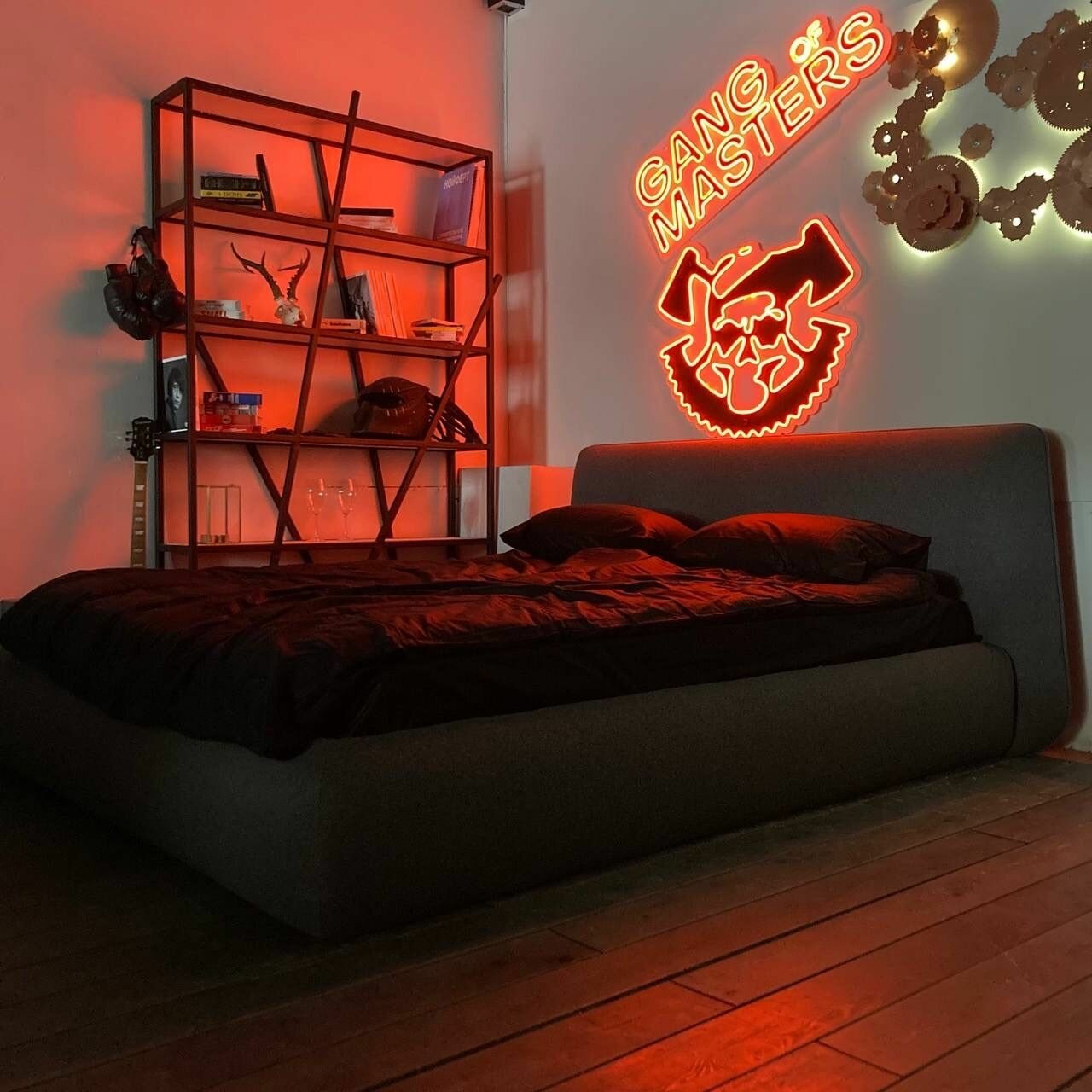 Кровать двуспальная «Скайлайн» Банда мастеров, оранжевое букле, 200x200см
