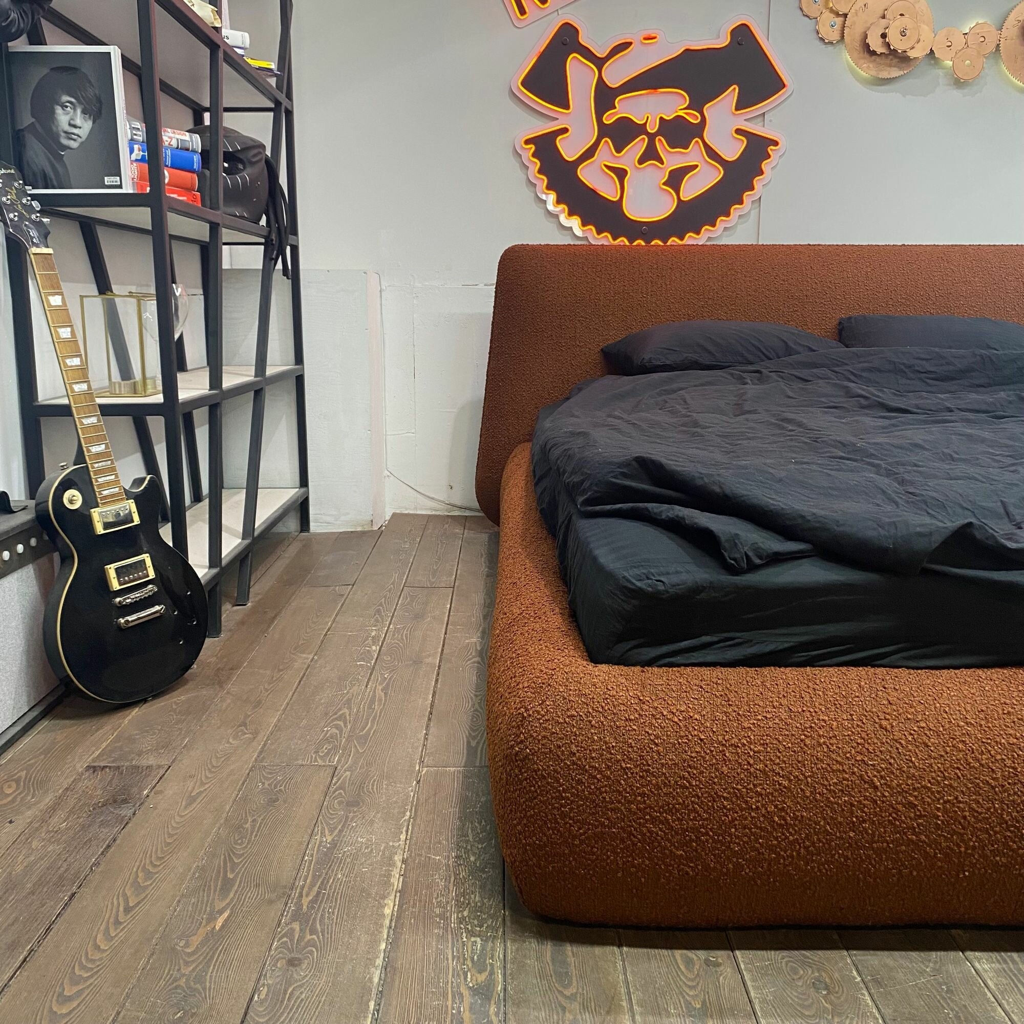Кровать двуспальная «Скайлайн» Банда мастеров, оранжевое букле, 200x200см