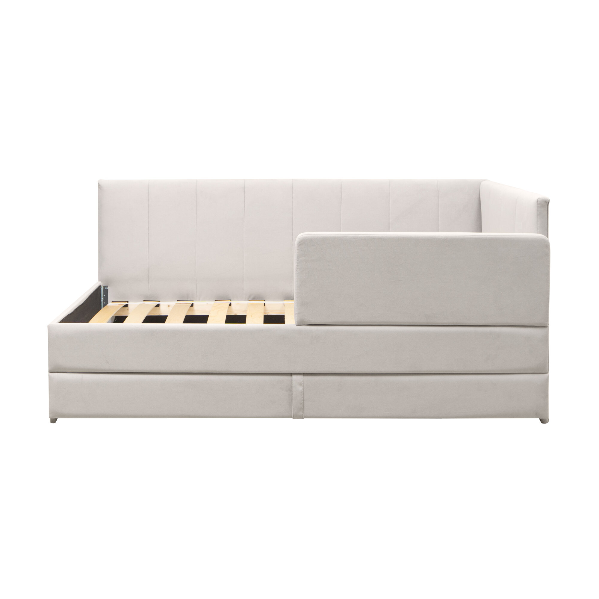 Кровать-диван Хагги 160*80 бежевая с защитным бортиком, с ящиком для хранения