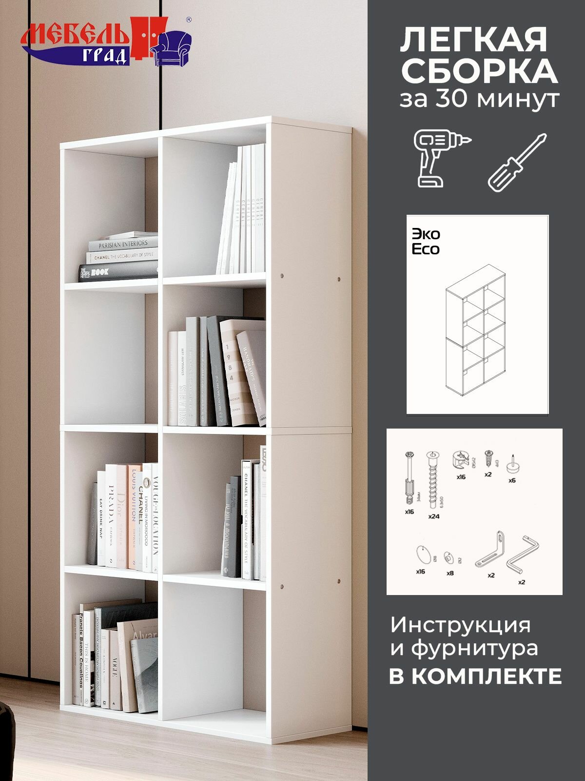 Стеллаж 8 секций белый Эко интересное: