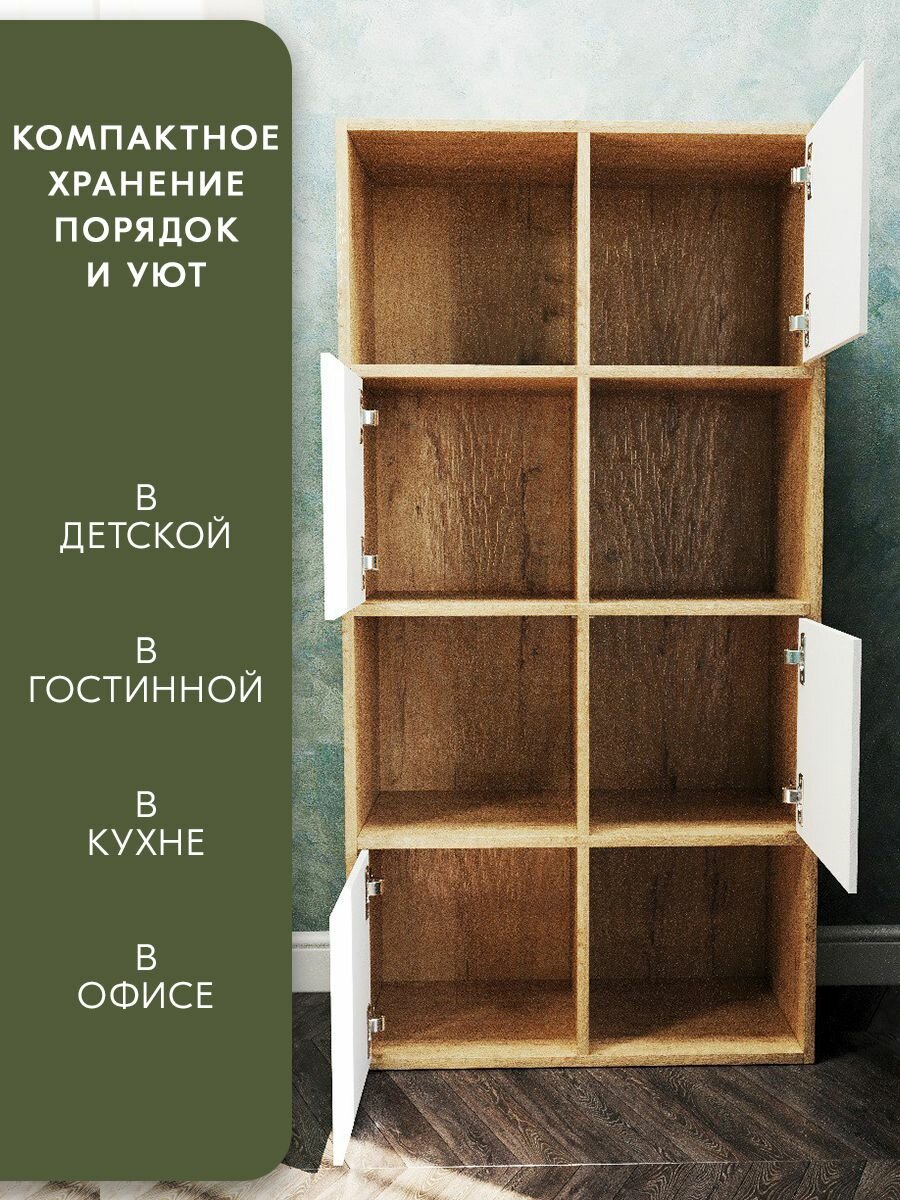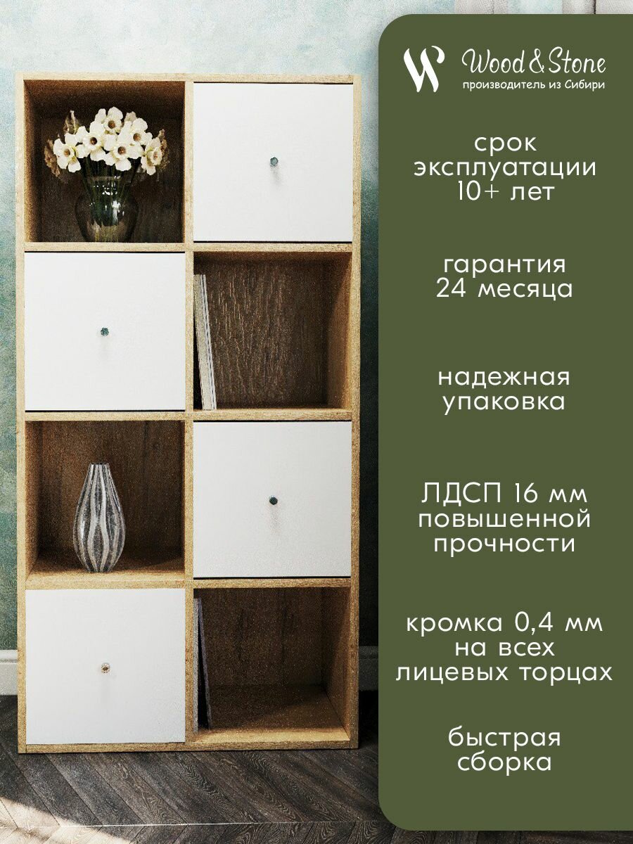 СохранитьСтеллаж с дверцами Wood&Stone 8 секций, 68,8х34,5х136,5 дуб бунратти/белый интересное: