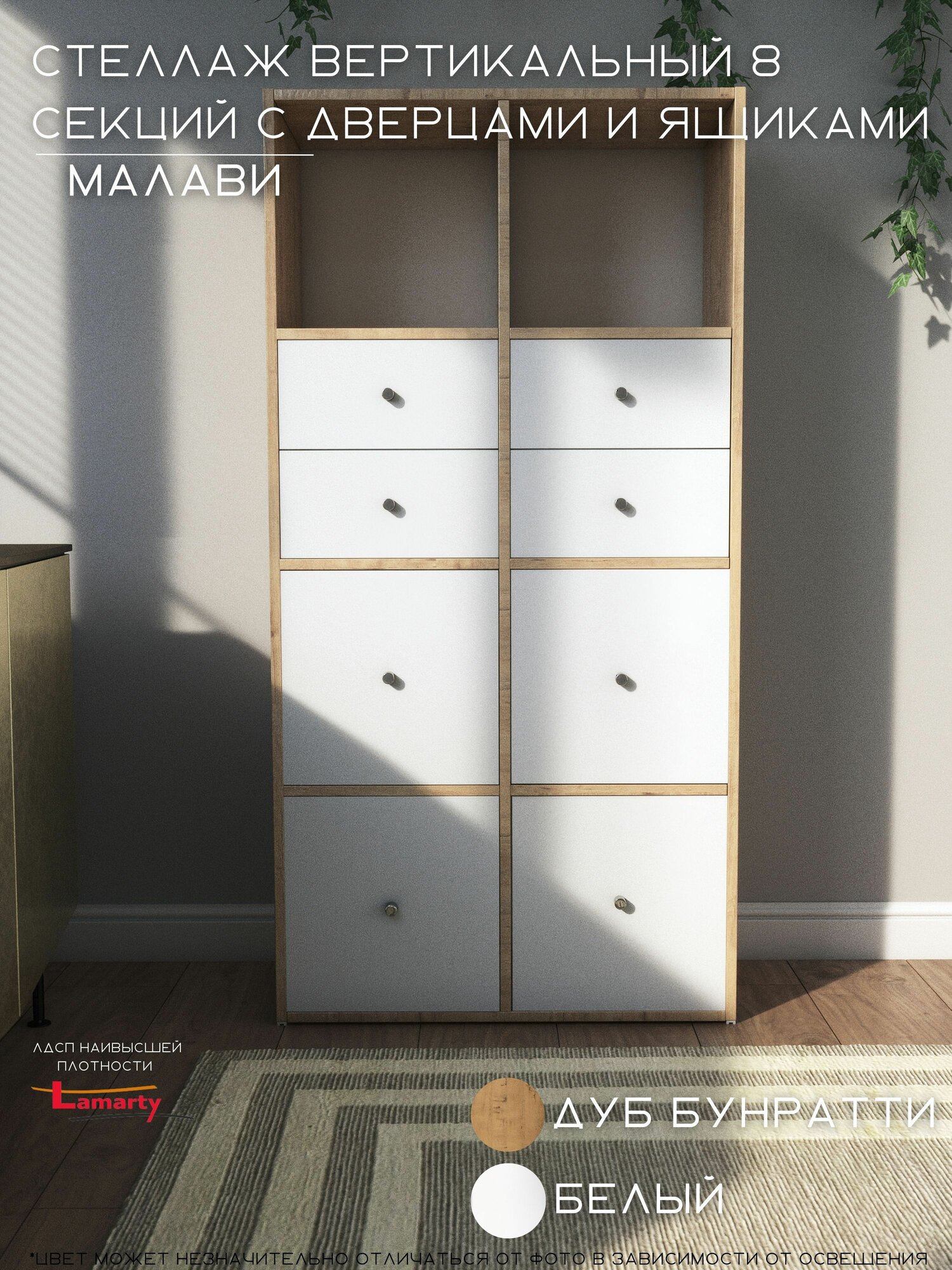 Стеллаж (в ассортименте) с ящиками и дверцами белый " Wood&Stone 8 секций, 320 (1)