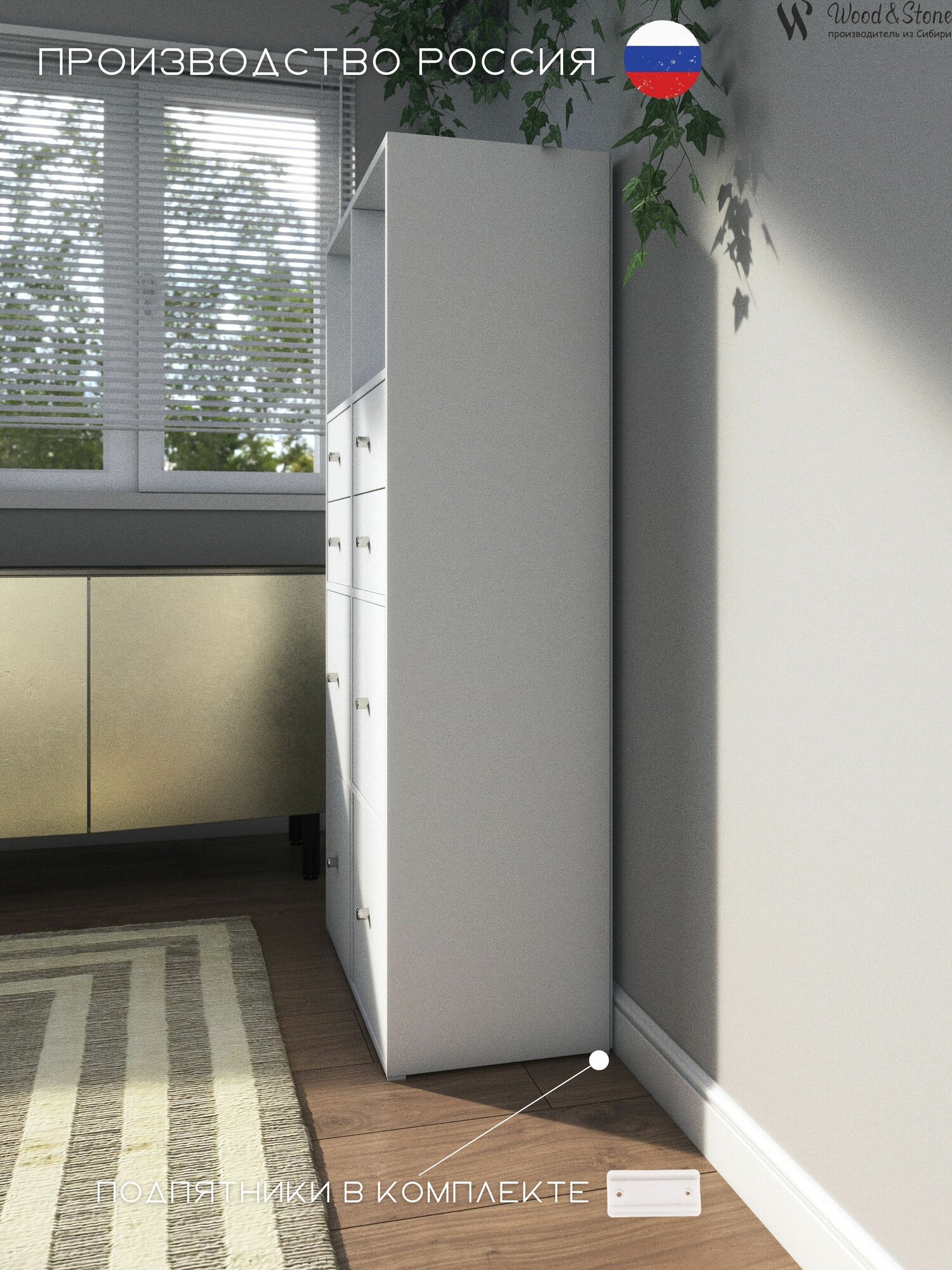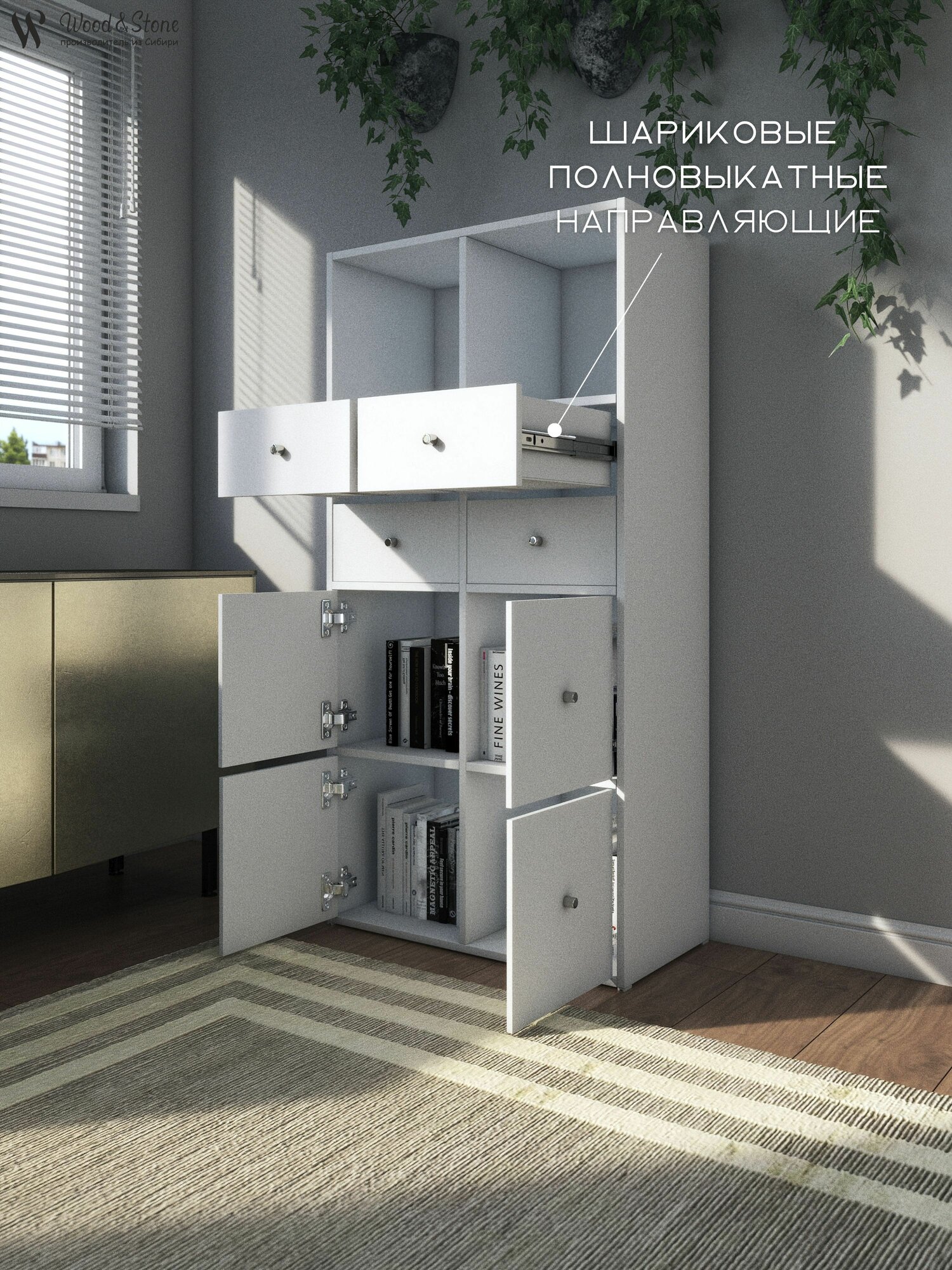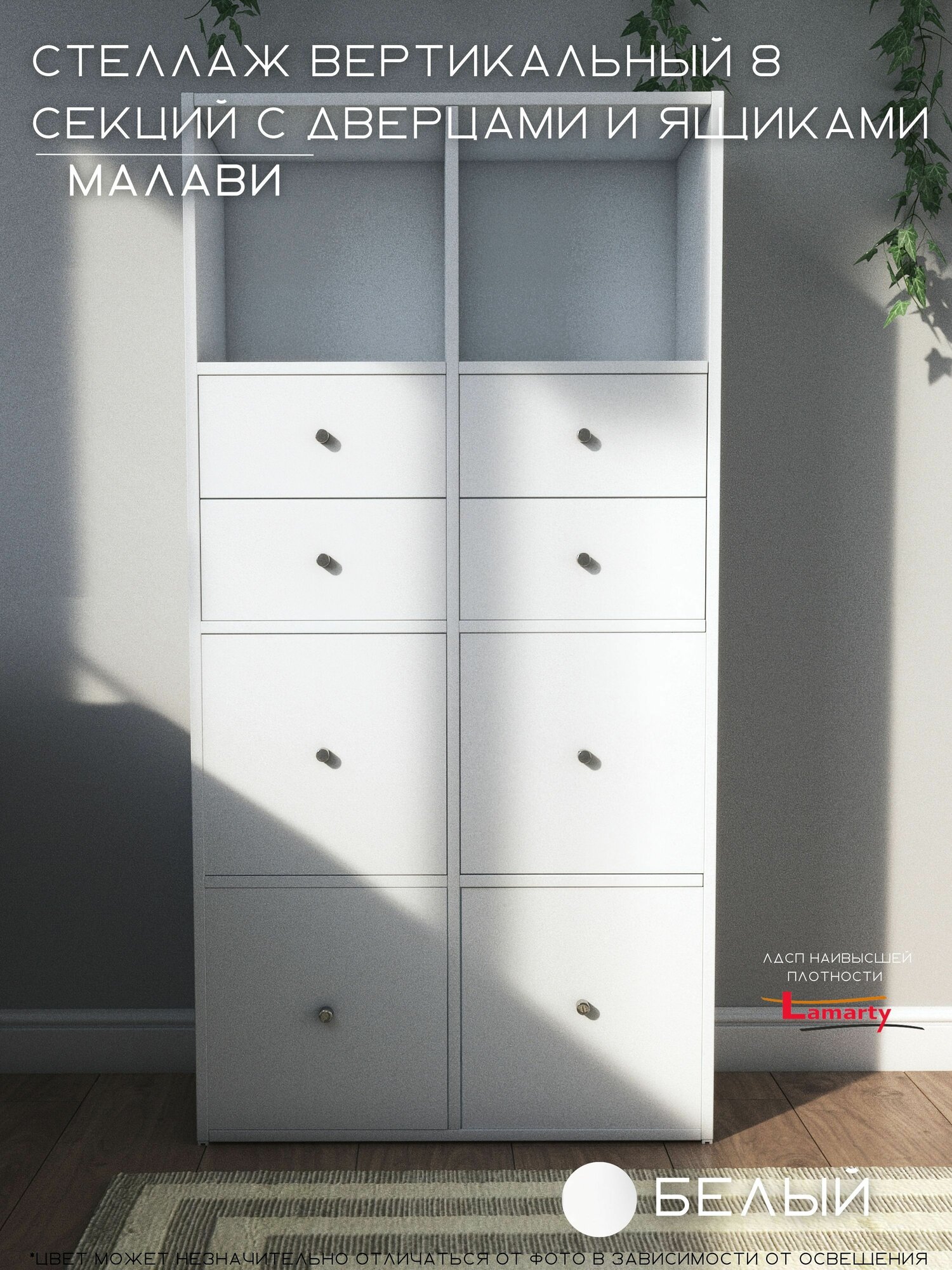 Купить Стеллаж (в ассортименте) с ящиками и дверцами белый " Wood&Stone 8 секций, 320 (1)