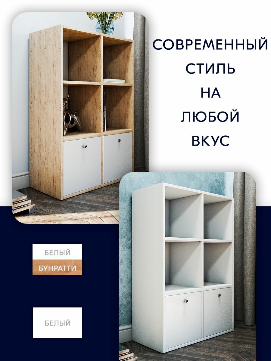 Стеллаж с дверцами для игрушек или вещей Wood&Stone 4 секции, 320 дуб бунратти/белый (1)