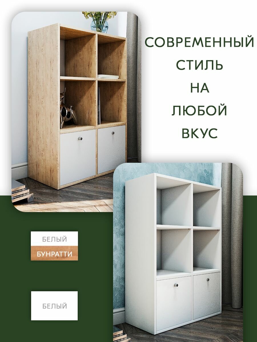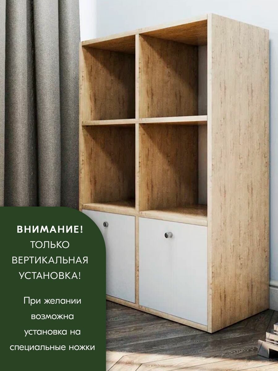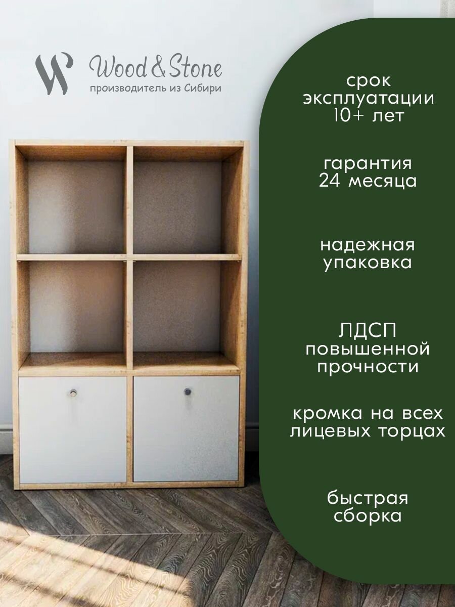 Стеллаж с дверцами для игрушек или вещей Wood&Stone 4 секции, 320 дуб бунратти/белый (1)