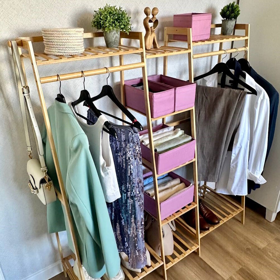 Стеллаж напольный для одежды из бамбука Bambuchka, 50х40х140 см