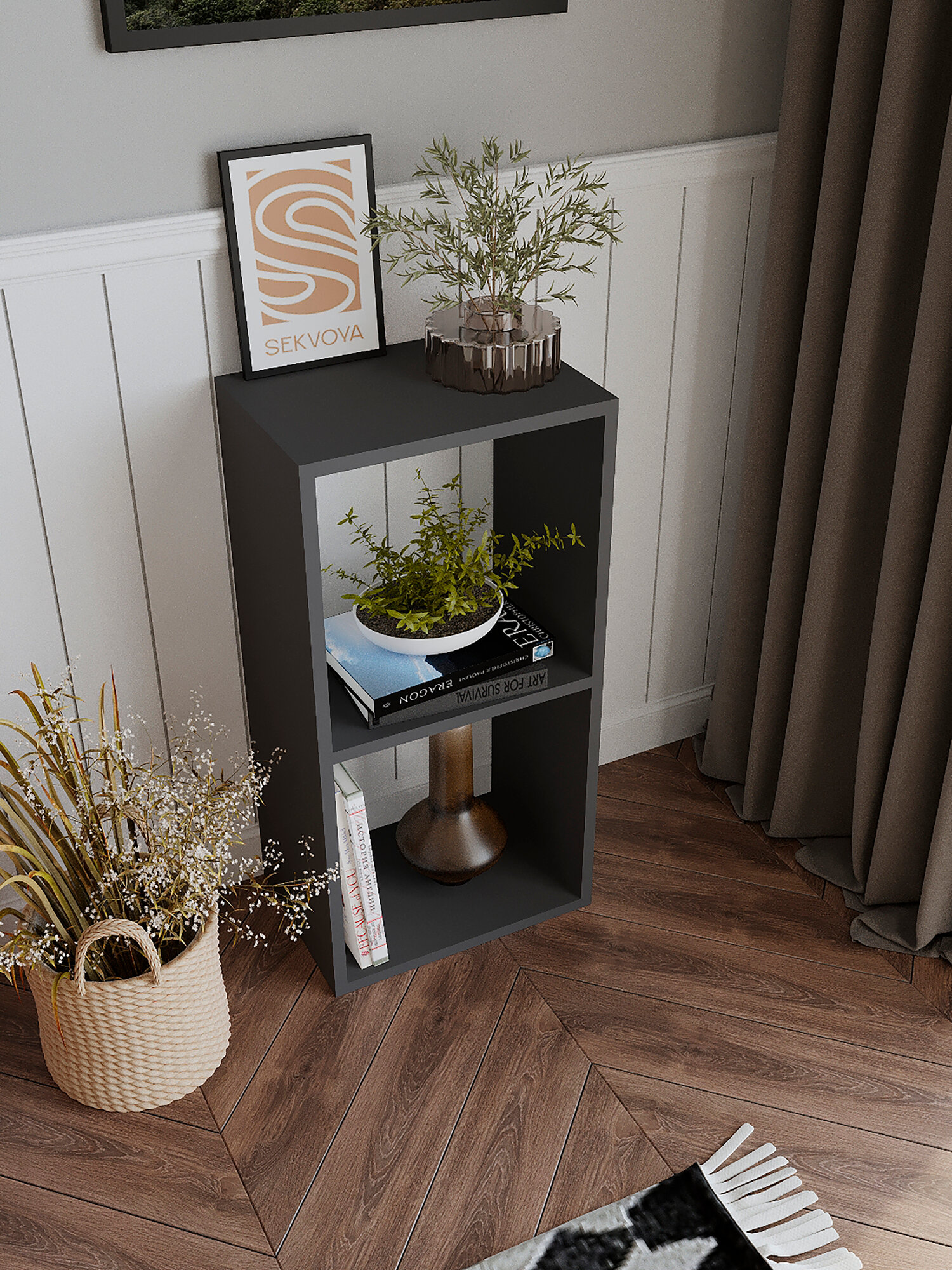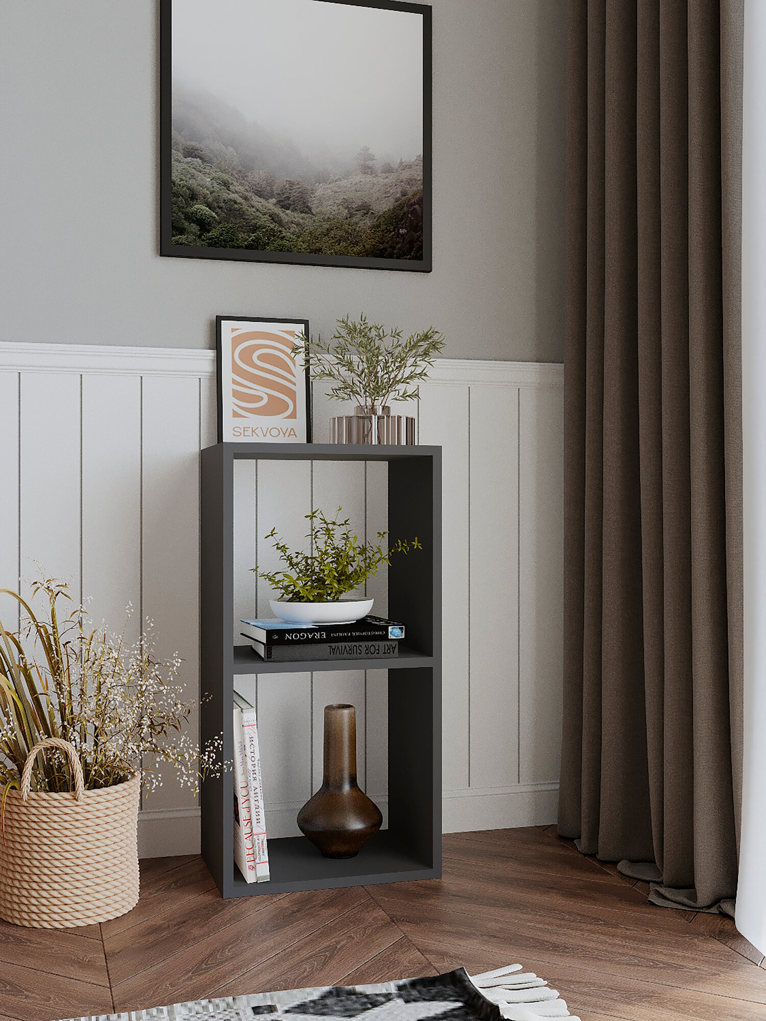 Стеллаж деревянный Нонтон Симпл графит 40.2x51.4x190 см, с ящиками