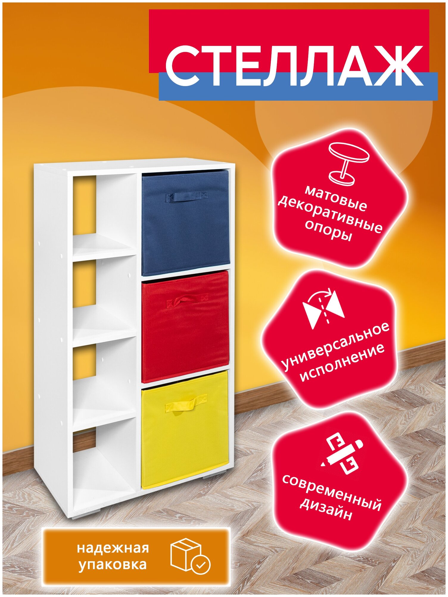 Купить Стеллаж деревянный для книг, игрушек и хранения вещей, ЛДСП 16мм