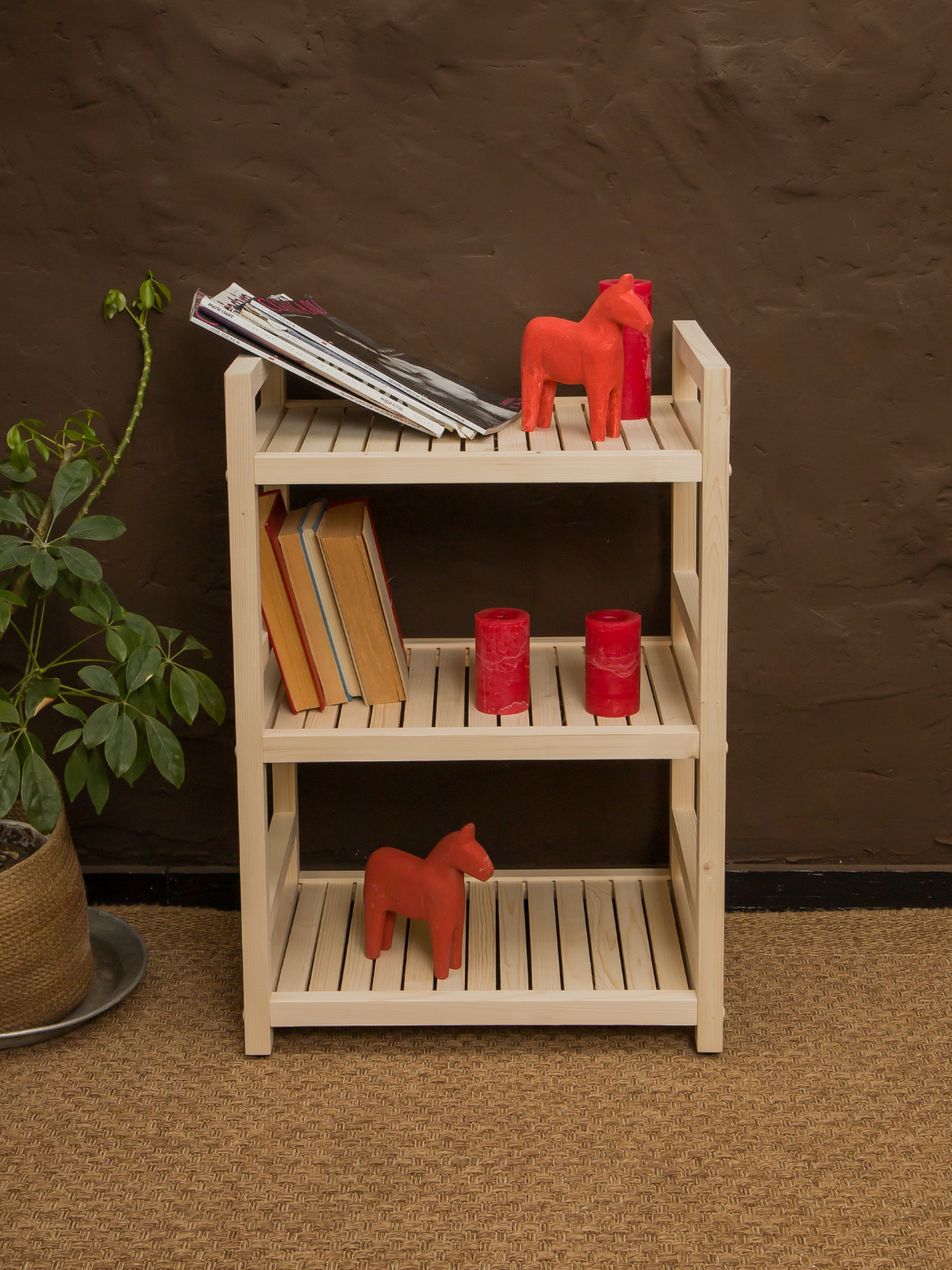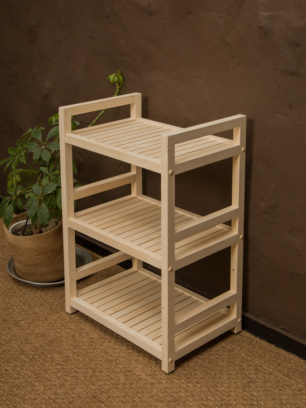 Этажерка деревянная 75х35х35 см, стеллаж напольный универсальный 3 полки