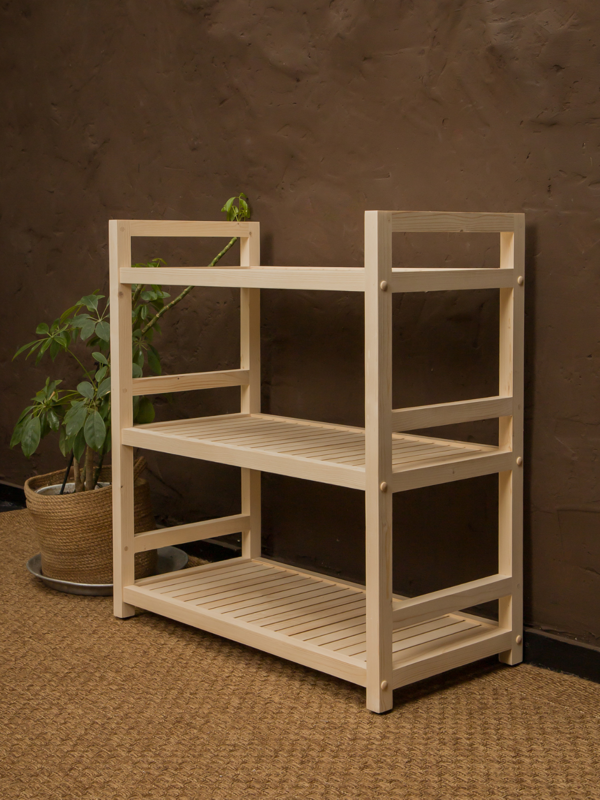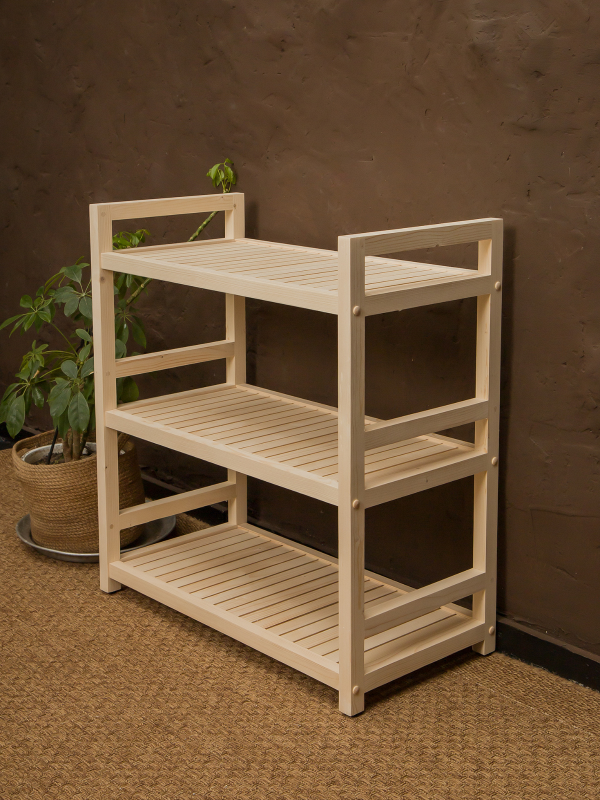 Этажерка деревянная 75х52х35 см, стеллаж напольный универсальный 3 полки
