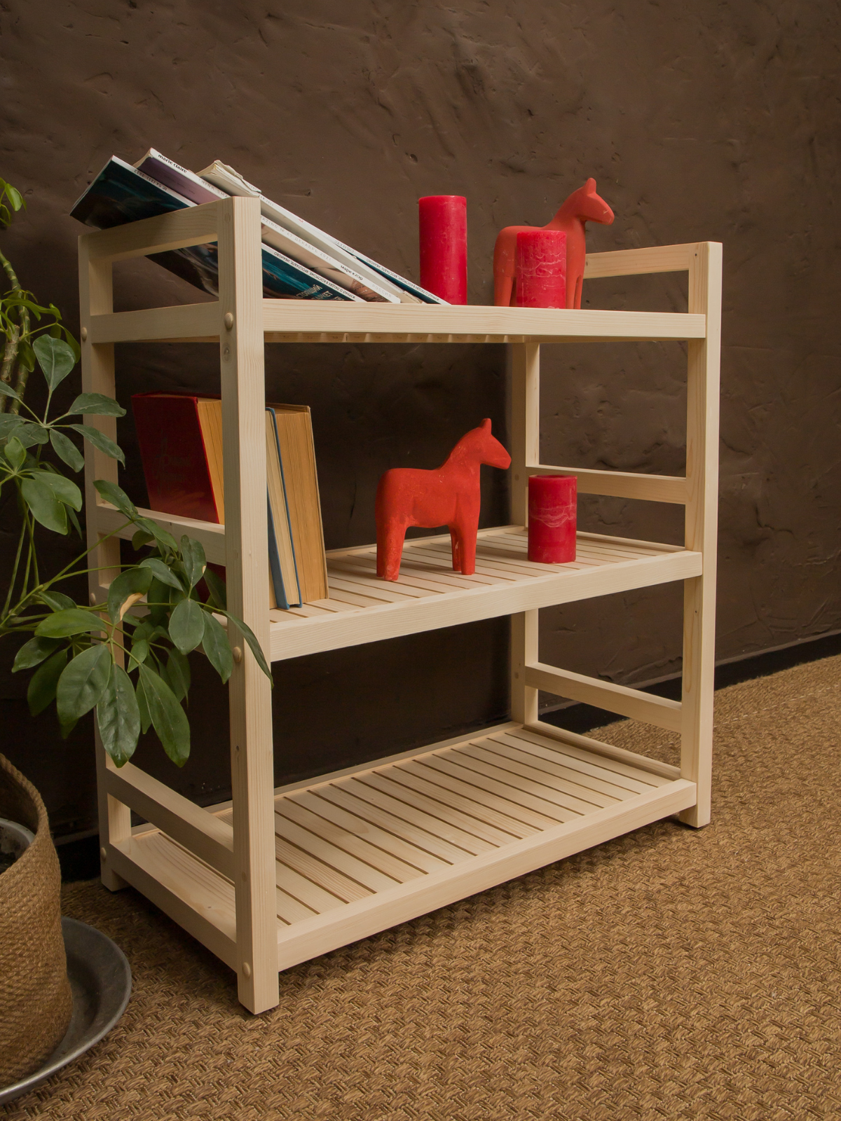 Этажерка деревянная 75х35х35 см, стеллаж напольный универсальный 3 полки
