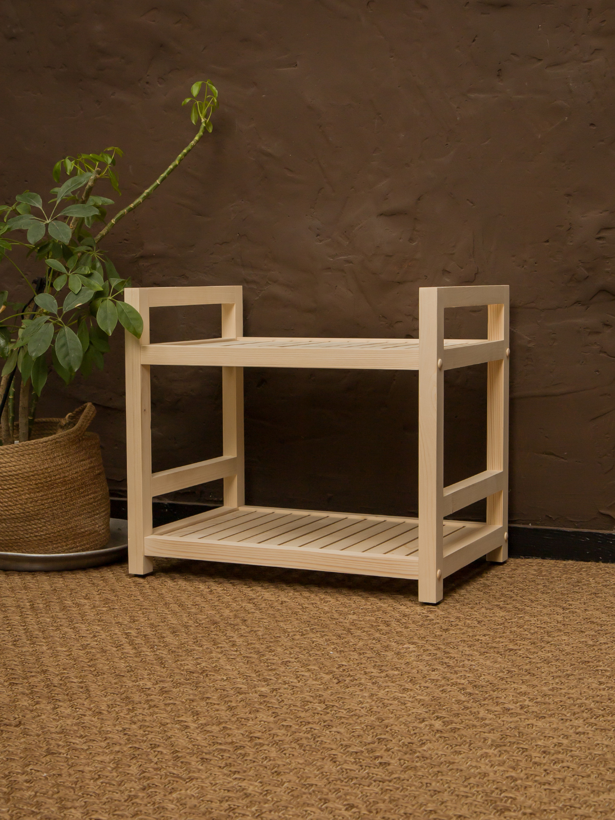 Этажерка деревянная 45х35х35 см, стеллаж напольный универсальный 2 полки