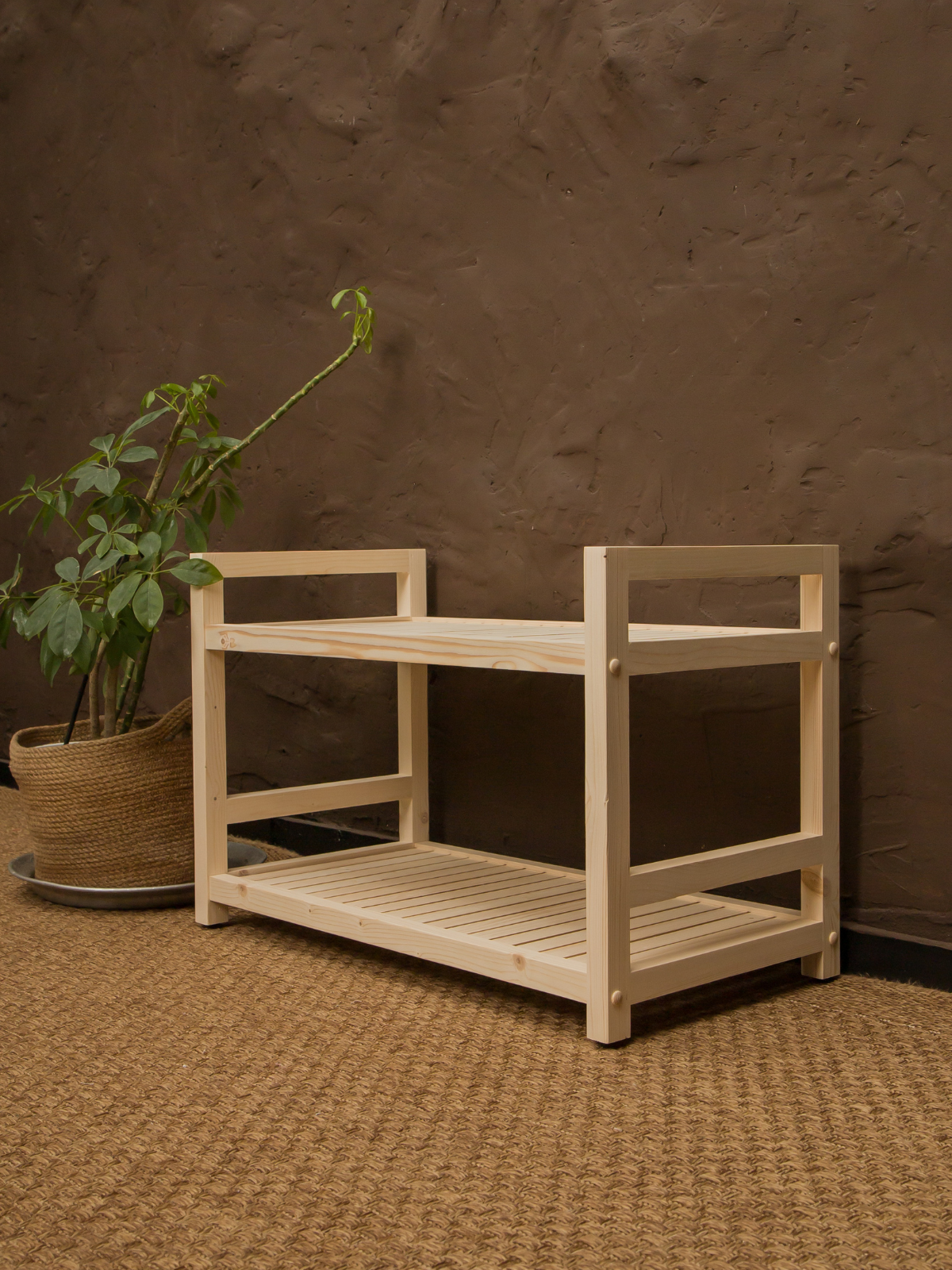 Этажерка деревянная 45х35х35 см, стеллаж напольный универсальный 2 полки