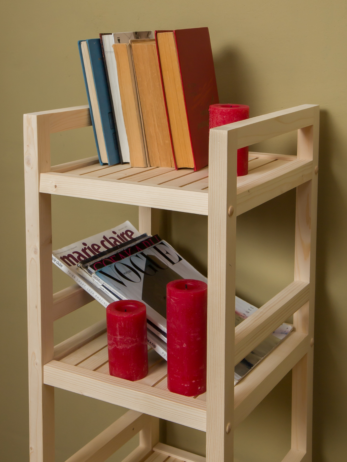 Этажерка деревянная 75х35х35 см, стеллаж напольный универсальный 3 полки