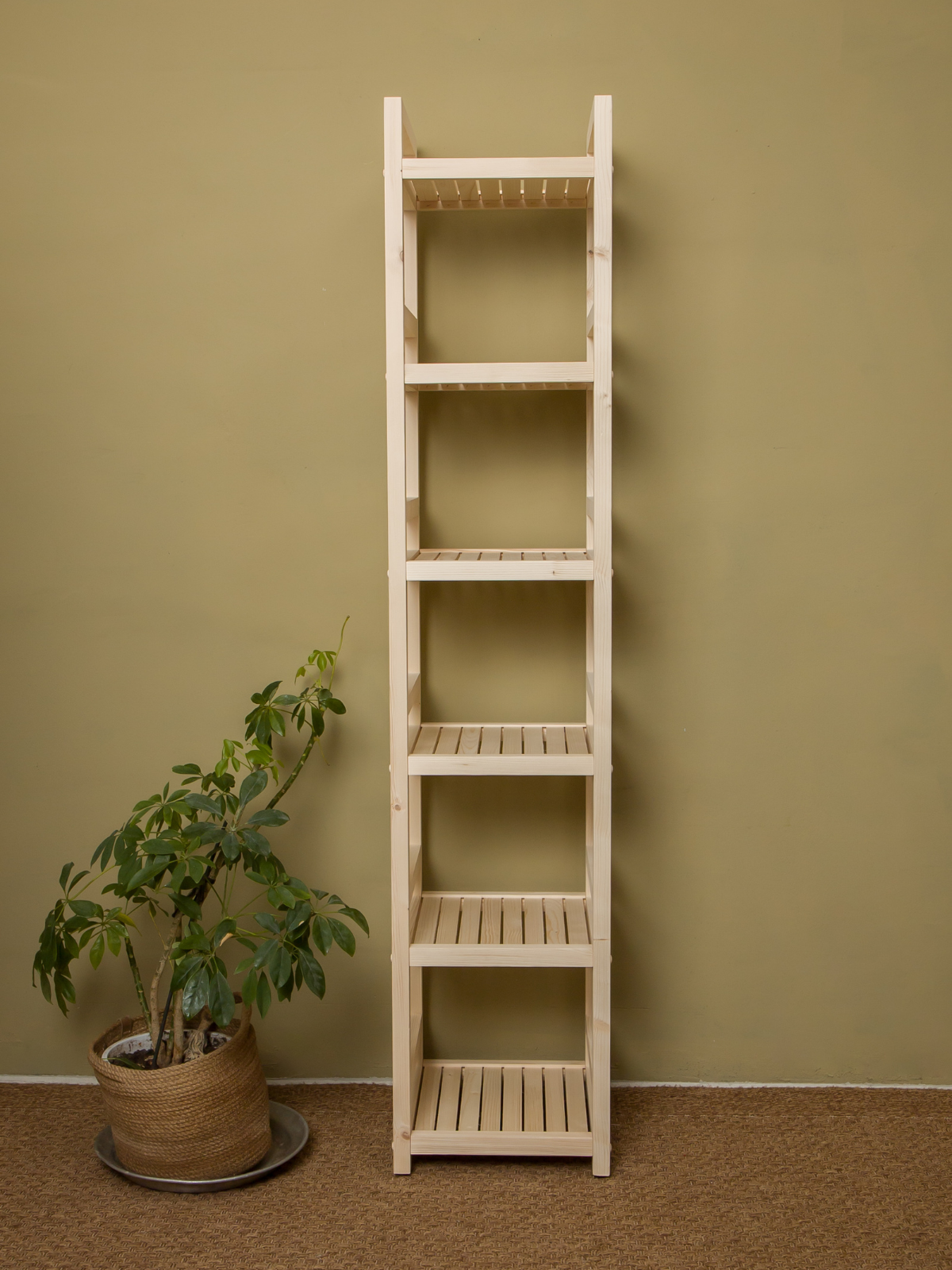 Стеллаж деревянный напольный 135х35х35 см, универсальный 5 полок