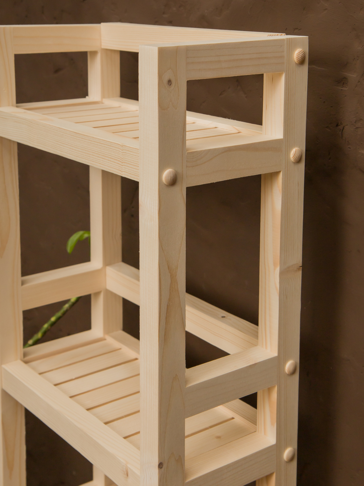 Этажерка на колесиках 75х35х25 см, стеллаж деревянный универсальный 3 полки