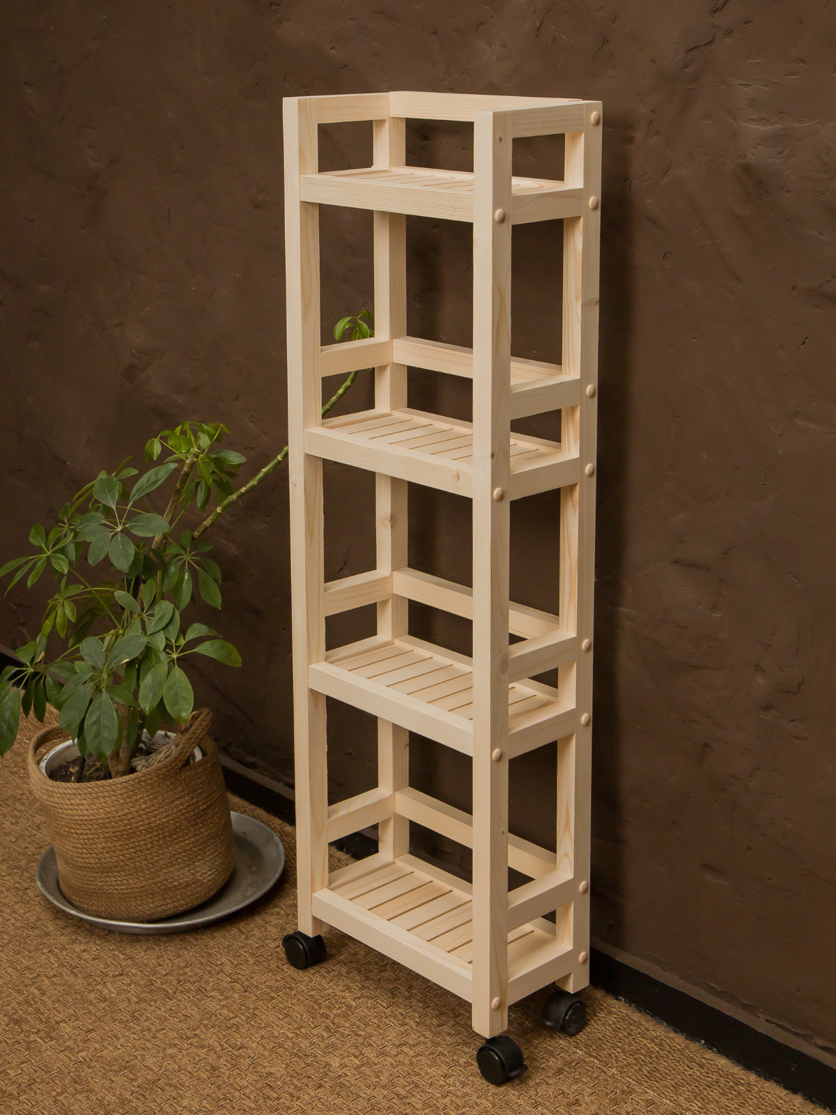 Купить Этажерка на колесиках 105х35х17 см, стеллаж деревянный универсальный 4 полки