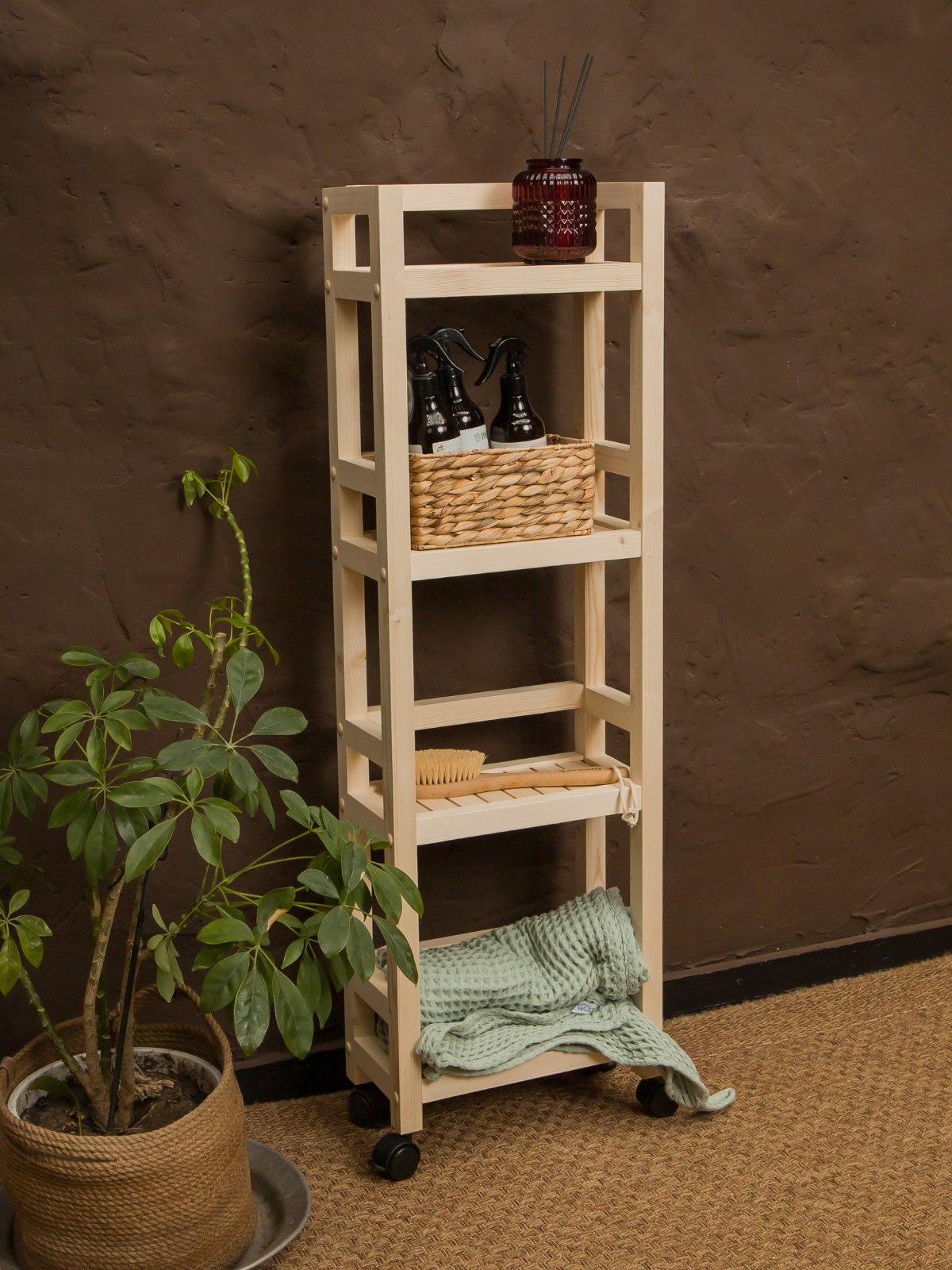 Этажерка на колесиках 105х35х25 см, стеллаж деревянный универсальный 4 полки
