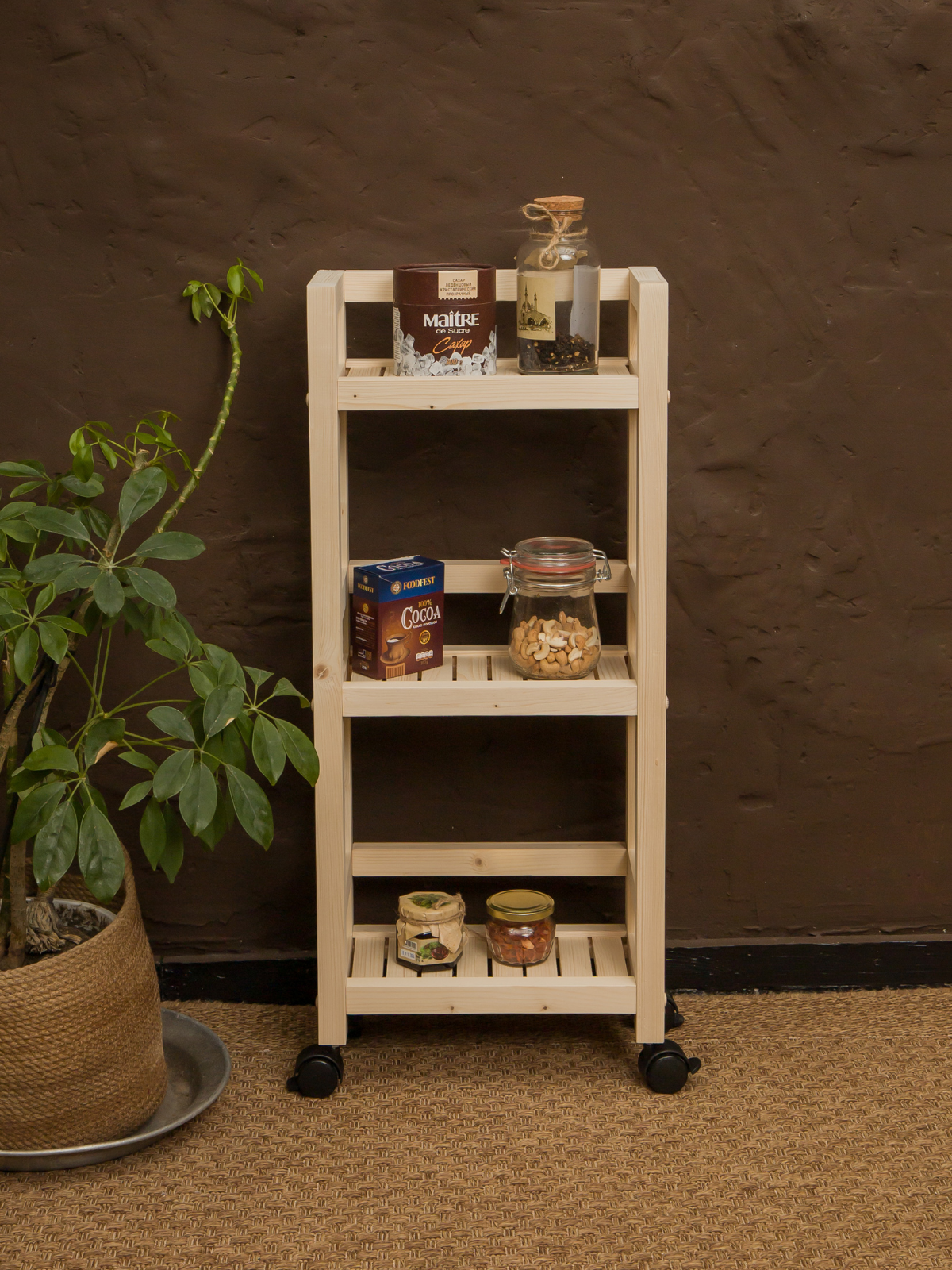 Этажерка на колесиках 105х52х25 см, стеллаж деревянный универсальный 4 полки