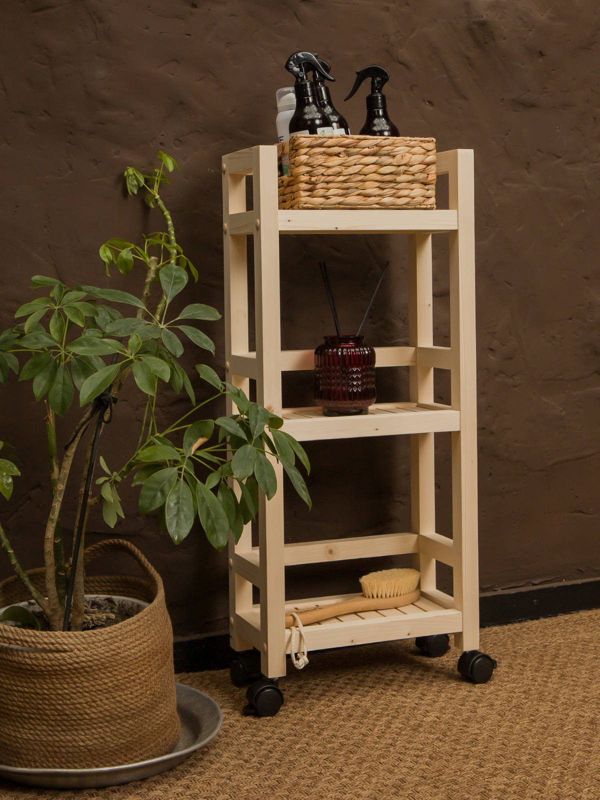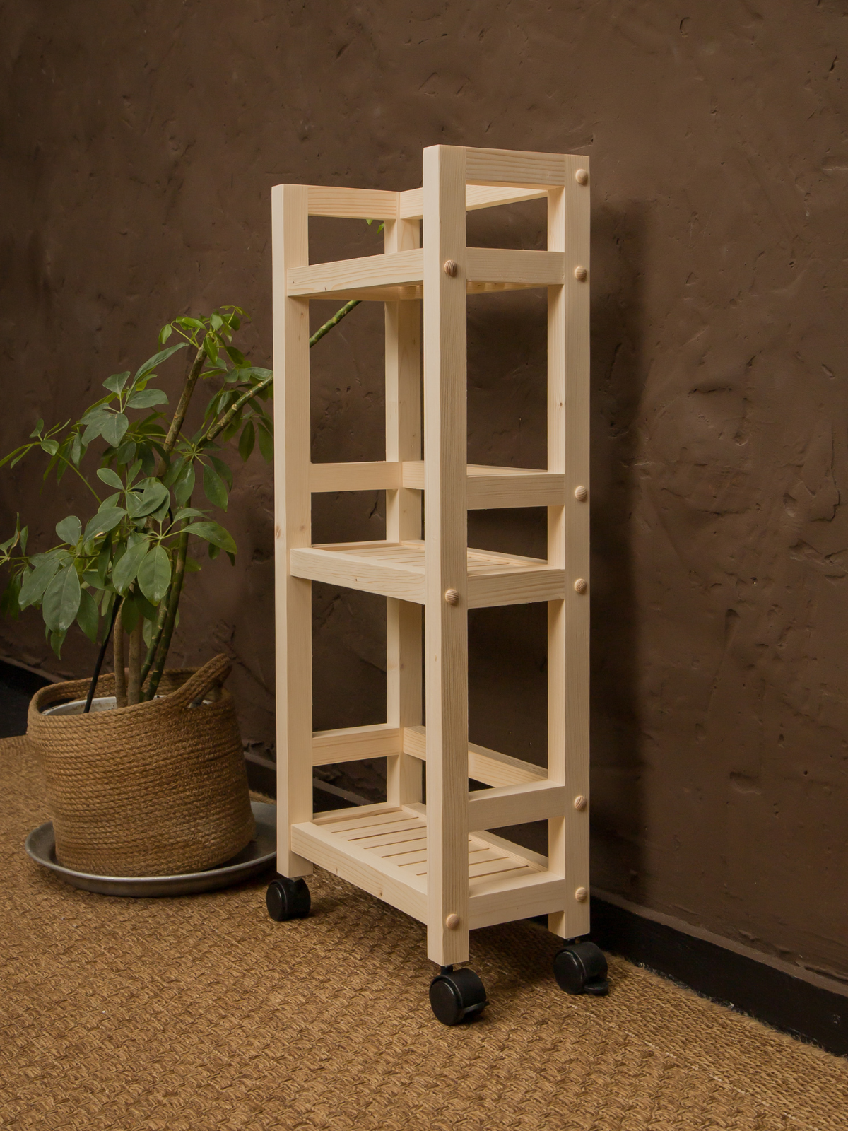 Этажерка на колесиках 75х35х25 см, стеллаж деревянный универсальный 3 полки