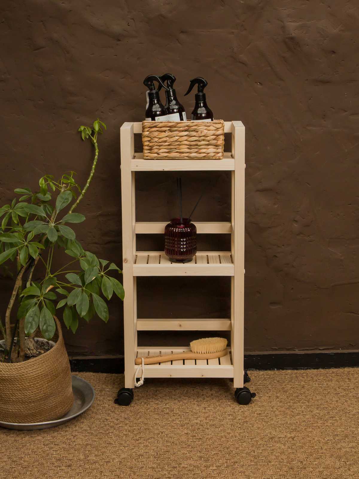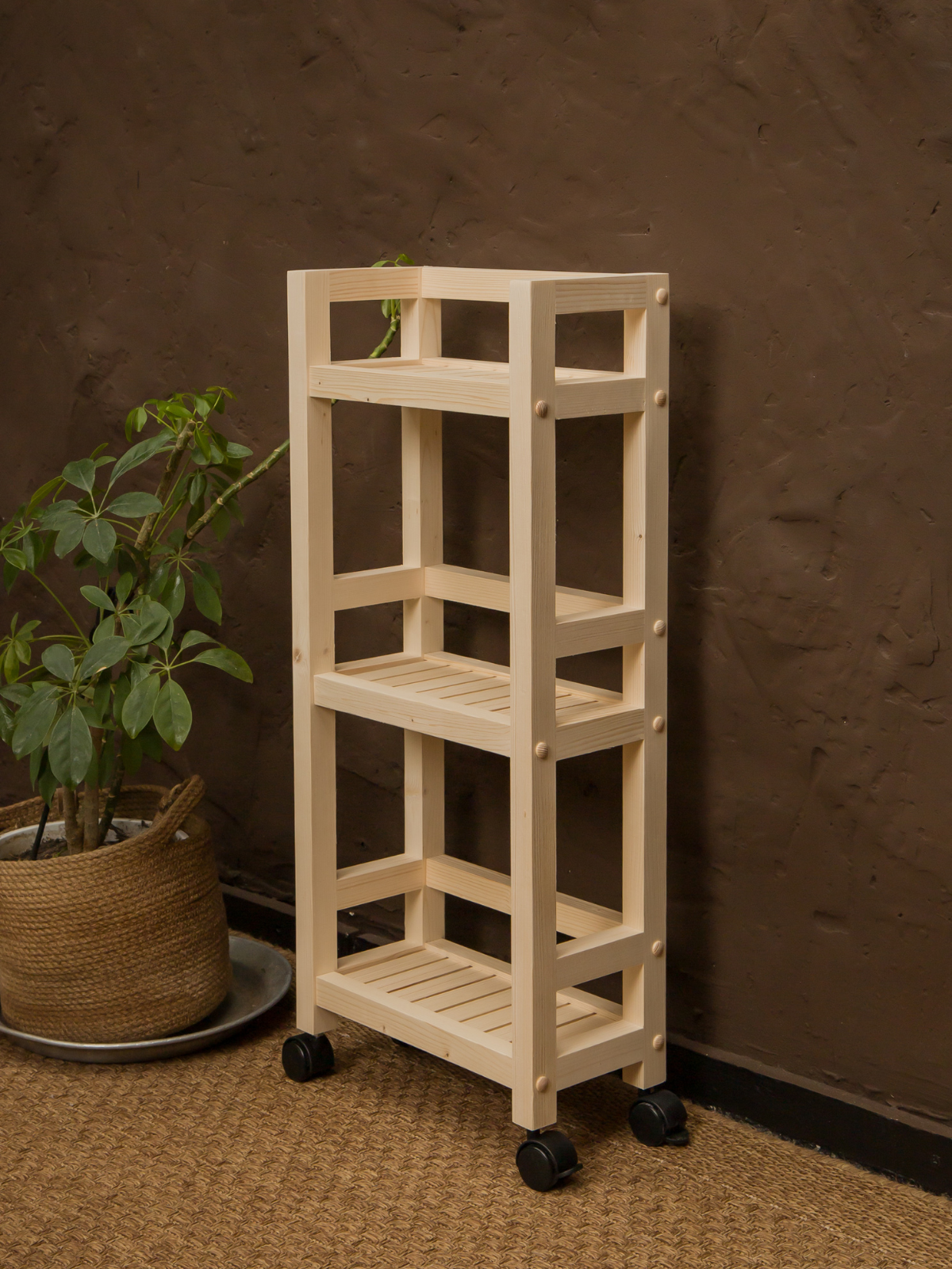 Этажерка на колесиках 105х35х25 см, стеллаж деревянный универсальный 4 полки