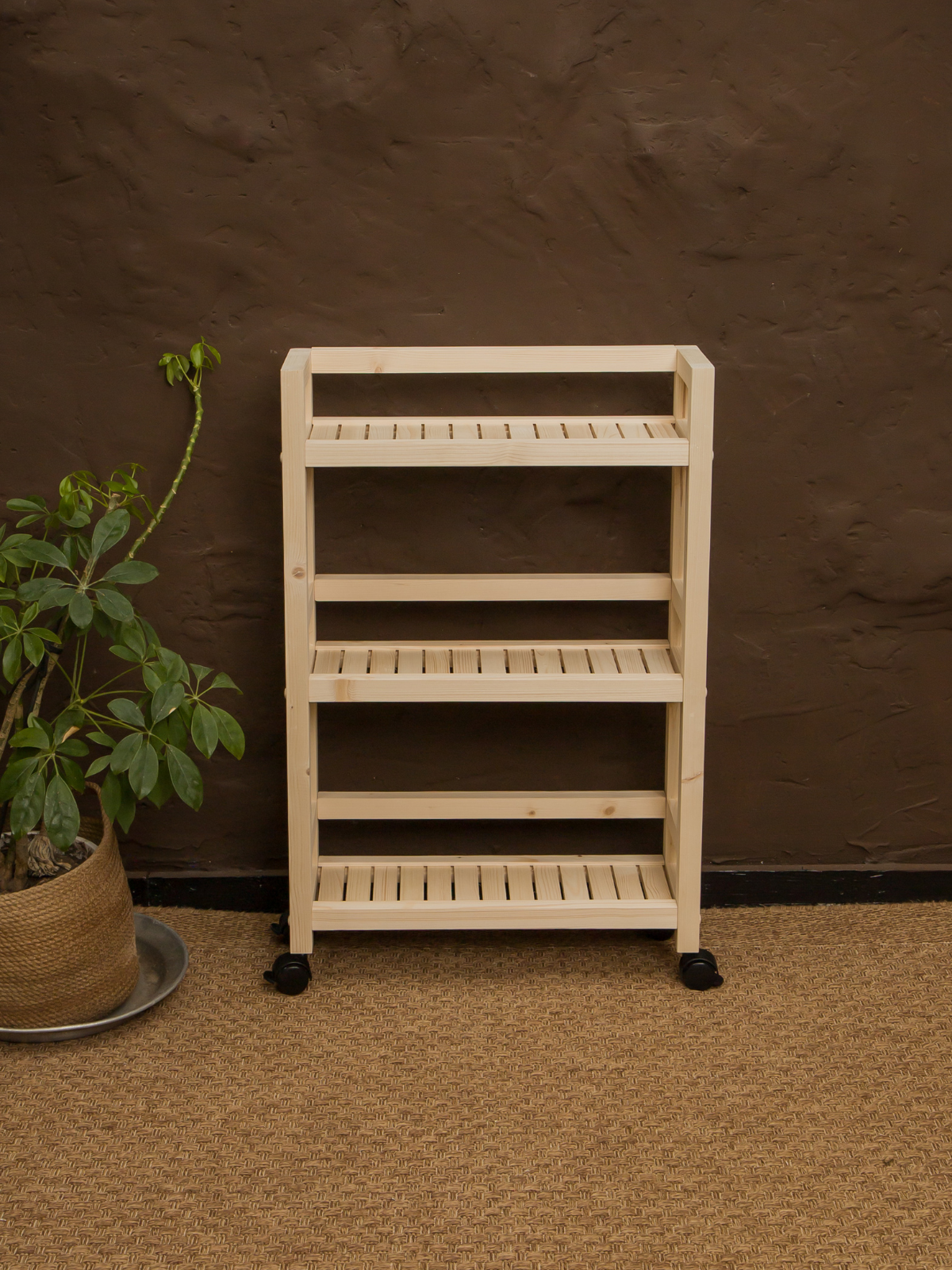 Этажерка на колесиках 75х35х25 см, стеллаж деревянный универсальный 3 полки