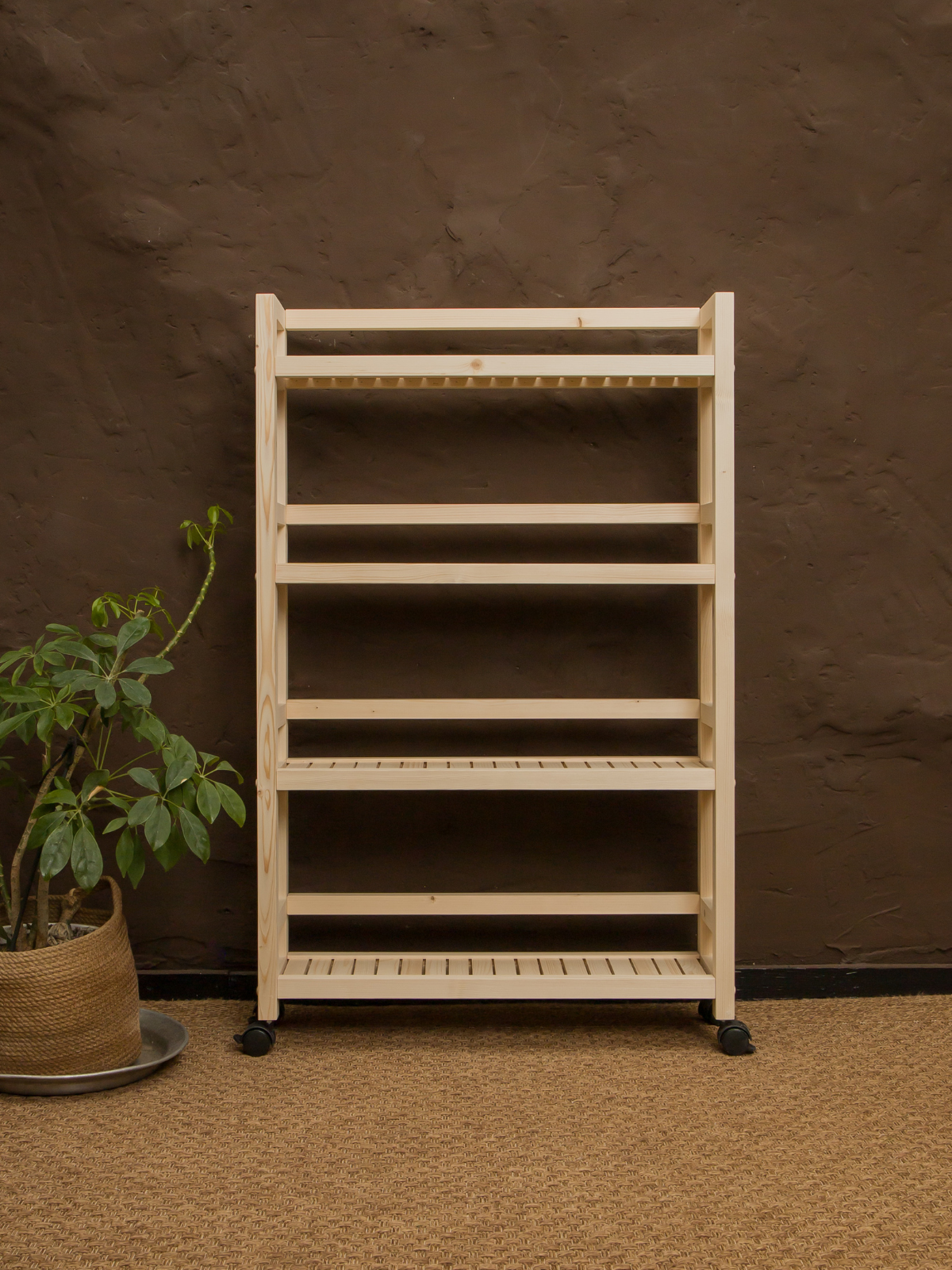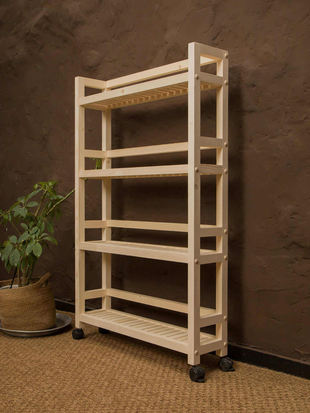 Этажерка на колесиках 105х35х25 см, стеллаж деревянный универсальный 4 полки