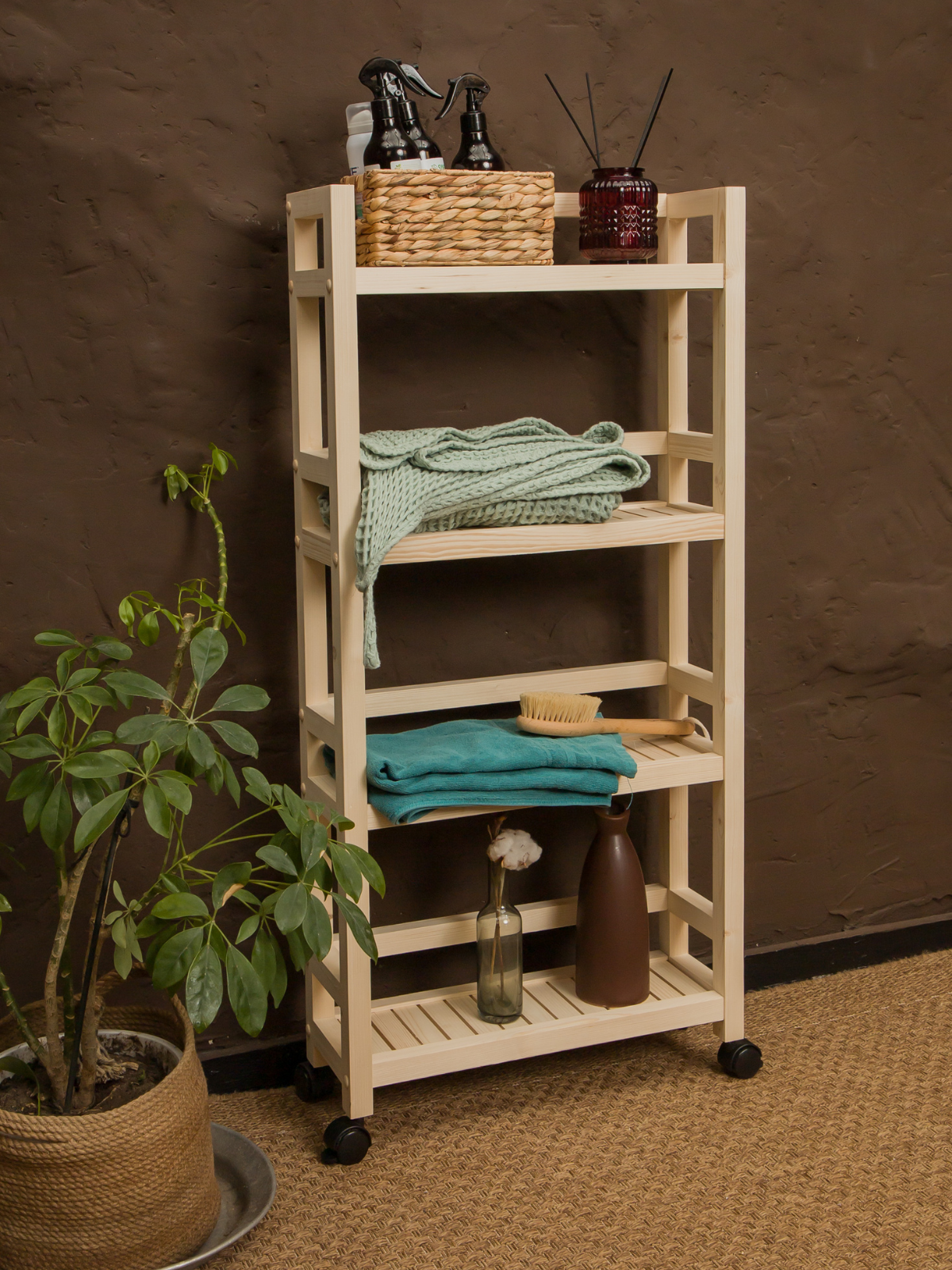 Этажерка на колесиках 105х52х25 см, стеллаж деревянный универсальный 4 полки