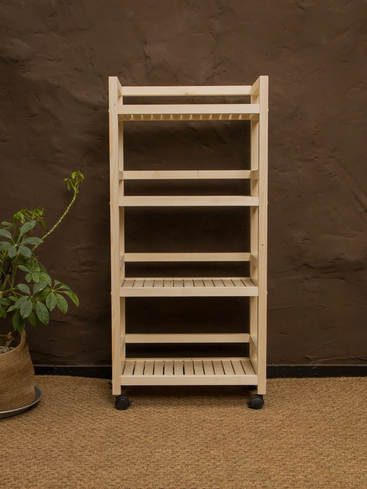 Этажерка на колесиках 105х35х25 см, стеллаж деревянный универсальный 4 полки