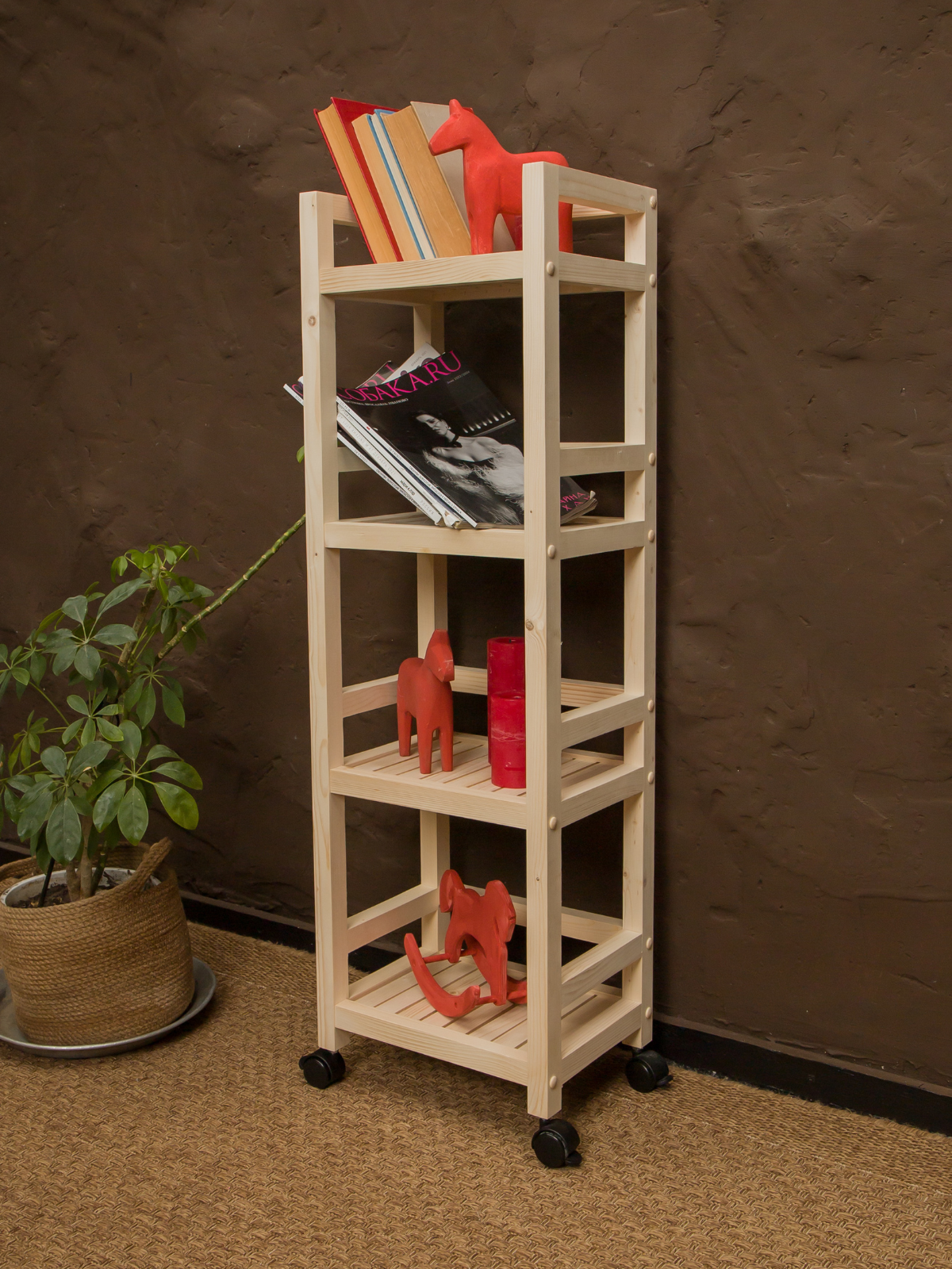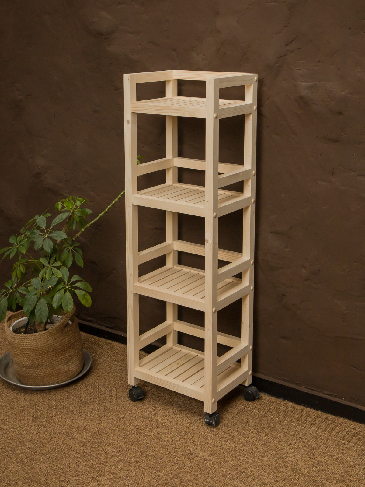 Купить Этажерка на колесиках 105х35х25 см, стеллаж деревянный универсальный 4 полки