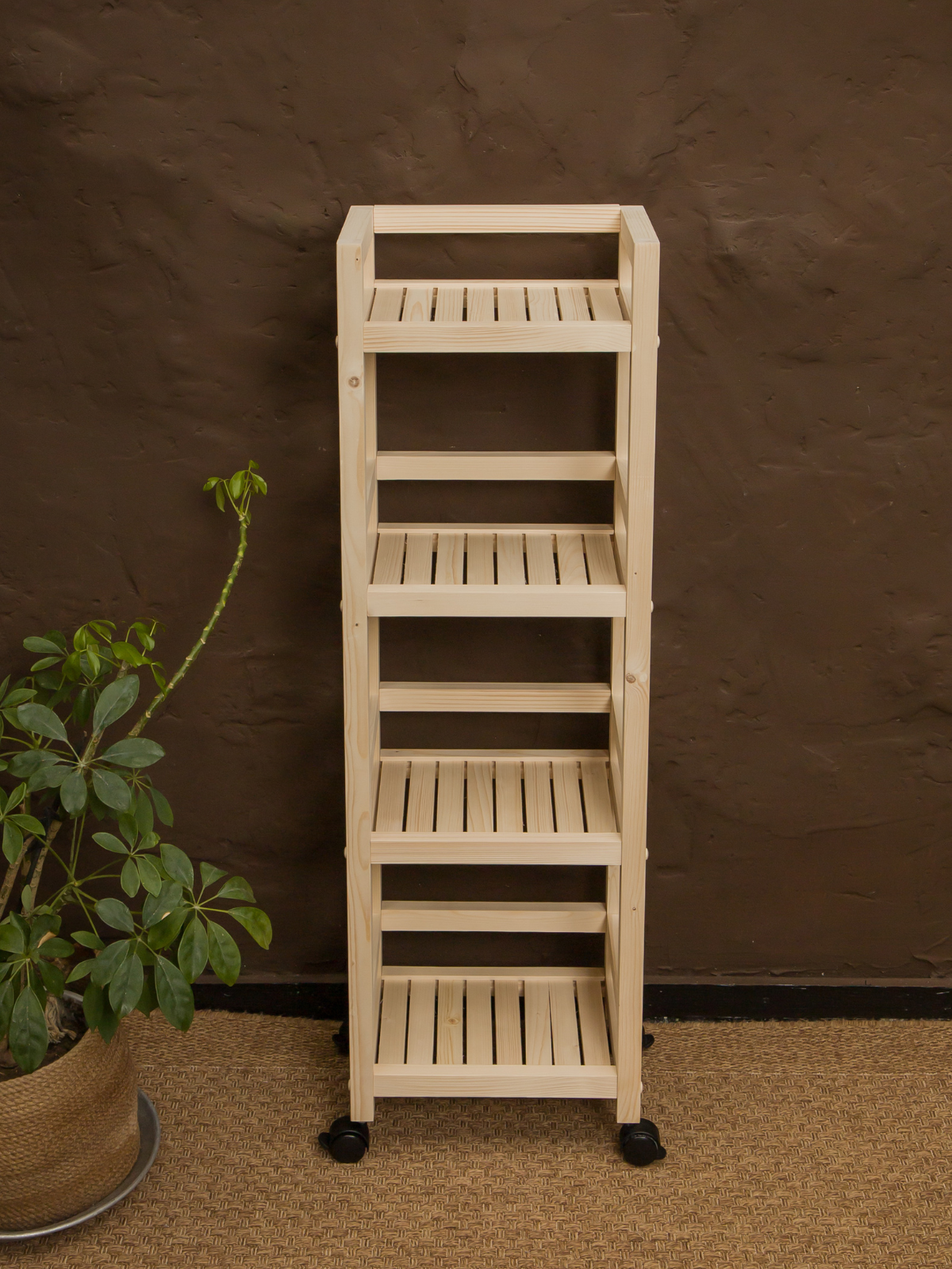 Этажерка на колесиках 105х52х25 см, стеллаж деревянный универсальный 4 полки