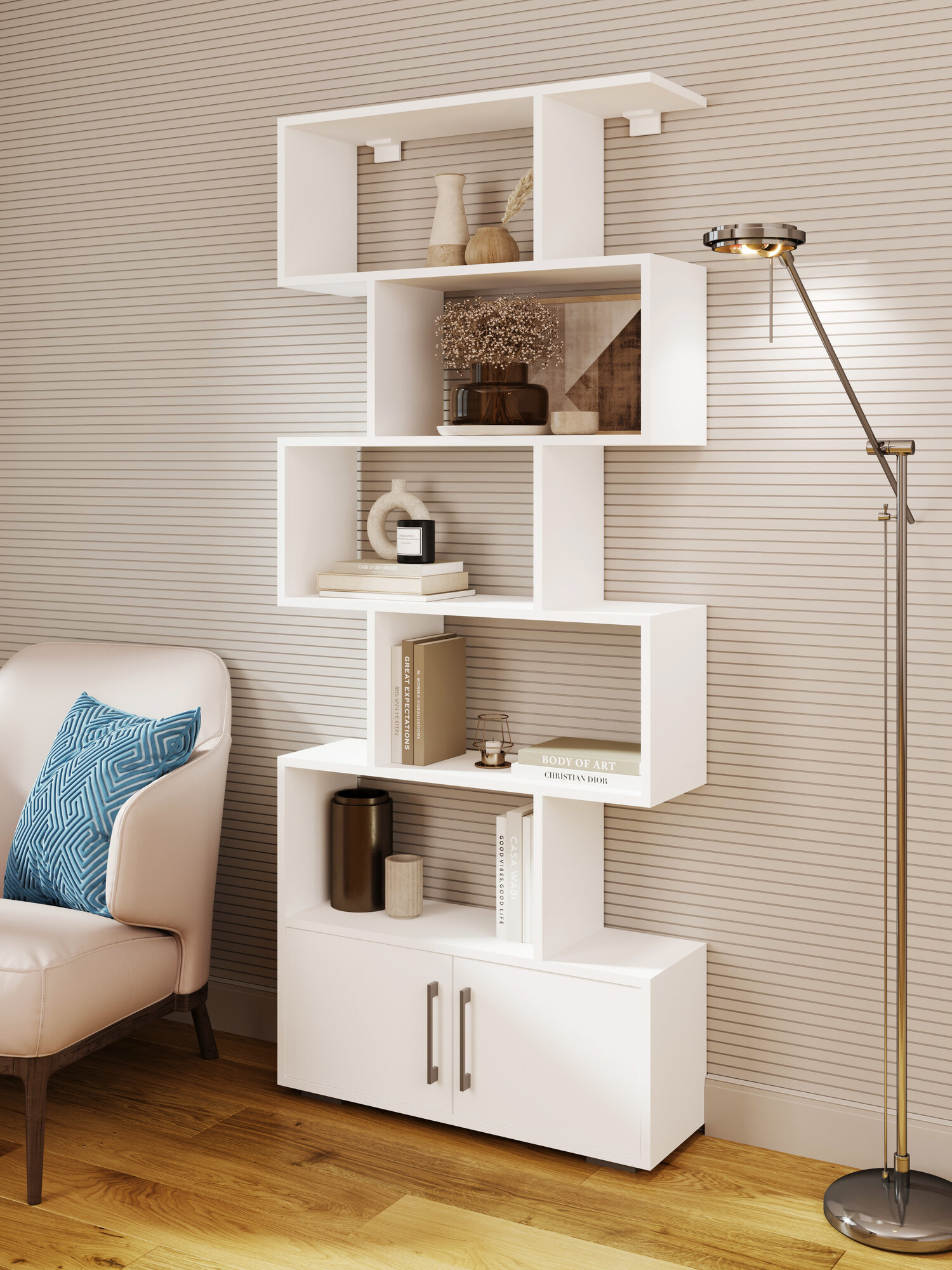 Купить Стеллаж белый ЛИДЕР-1 напольный деревянный для книг и игрушек 73х23х175,2 см