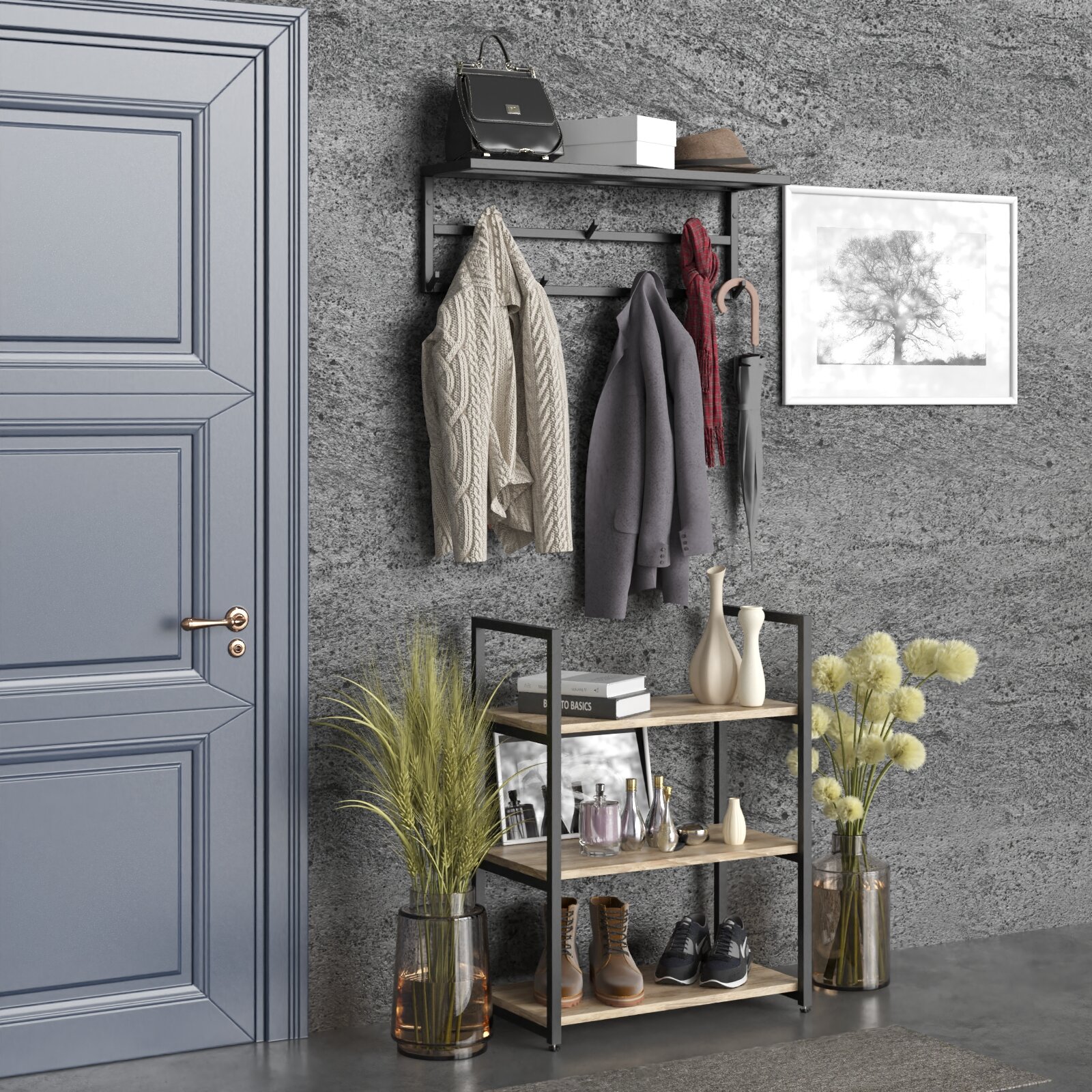 Стеллаж металлический напольный DK_Loft, 3 полки дуб Сонома интересное: