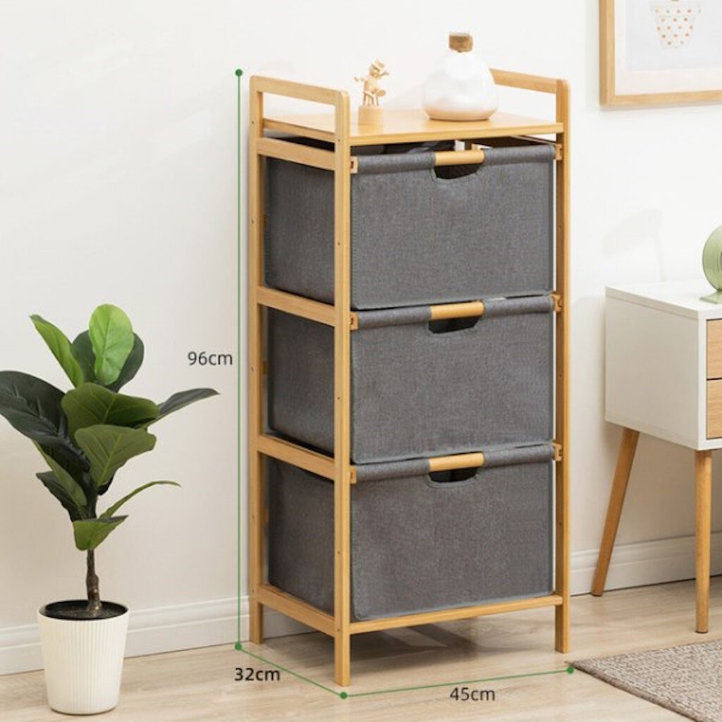 Этажерка напольная с выдвижными тканевыми ящиками и бамбуковой полкой, 60х32х96 см